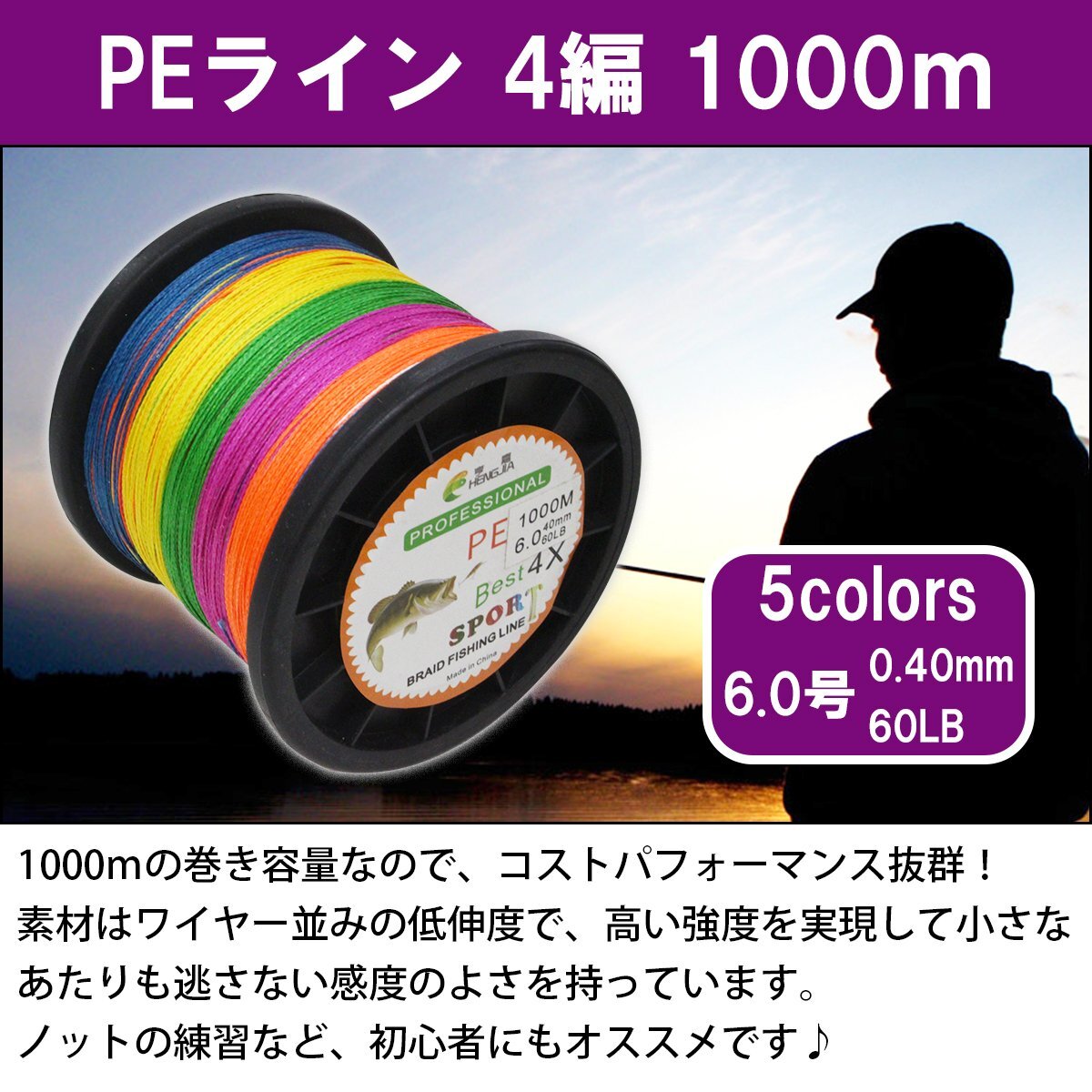 【新品即納】釣り糸 1000m PEライン 6.0号/60lb 5色 マルチカラー MIX 投げ釣り 船釣り ジギング ルアー エギング タイラバ リール