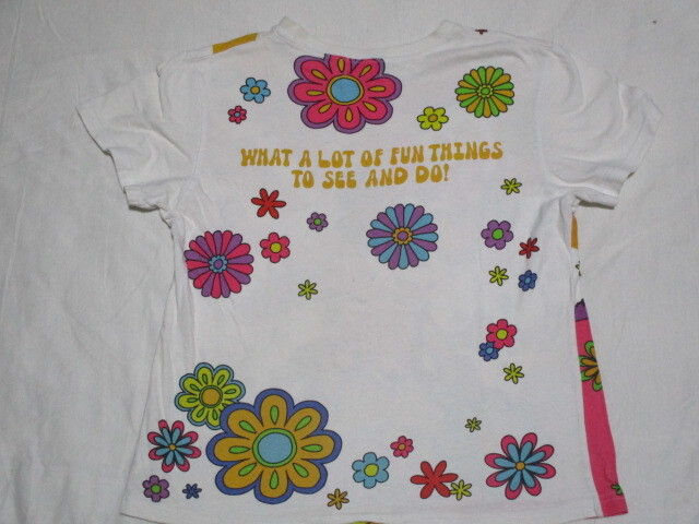 ブランド名:東京ディズニーリゾート サイズ 150 着丈約54cm 身幅約45cm 色:白総柄 状態:中古です。衿ぐりや袖に薄汚れありも大きなダメージはありません。綿100% 中古です。細かいことを気になさる方、完璧なものをお求めの方は、入札をご遠慮ください。 | |||