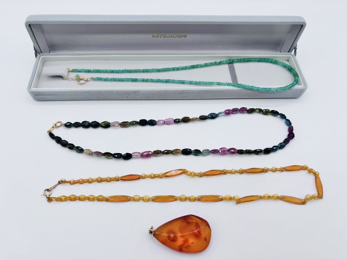 【AC-17】ネックレス エメラルド トルマリン 琥珀 べっ甲 アクセサリーおまとめ K18刻印