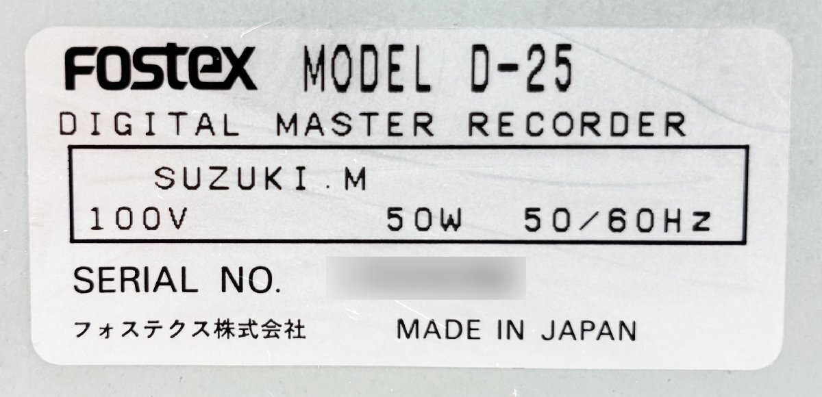 M◆FOSTEX(フォステクス)/業務用DATデジタルマスターレコーダ/D-25/通電のみ確認/現状品 |