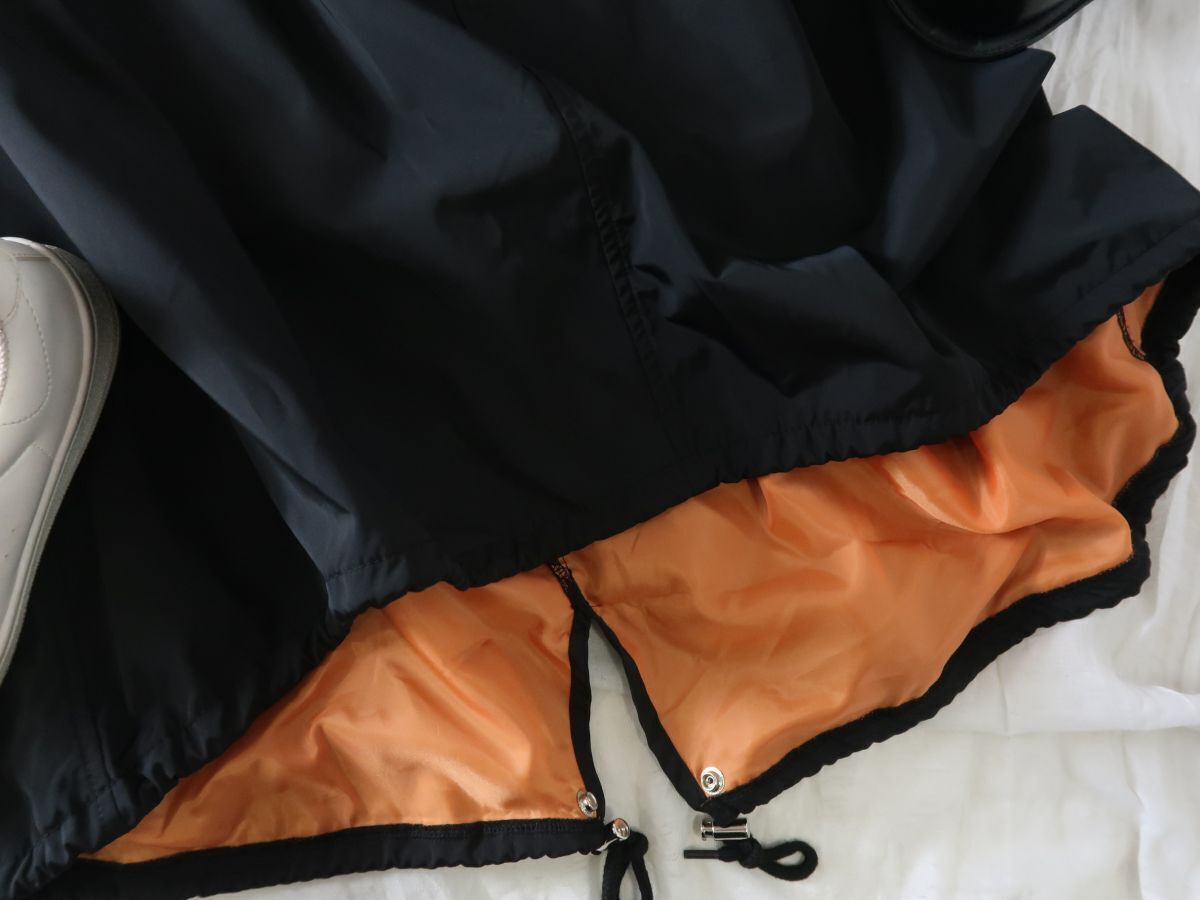 後ろの丈は前と同じ長さに出来るボタンがついています。