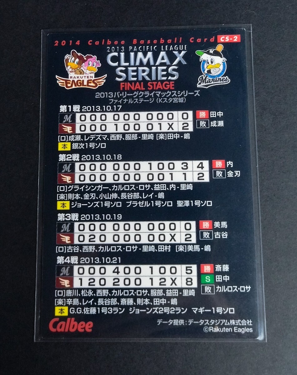2014年カルビー 第1弾 楽天ナイン(楽天)クライマックスシリーズカード!優勝を喜ぶ楽天ナイン。No,CS-2。