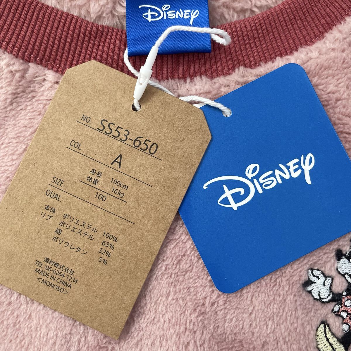 左胸にミニーちゃんの刺繍が施されています。