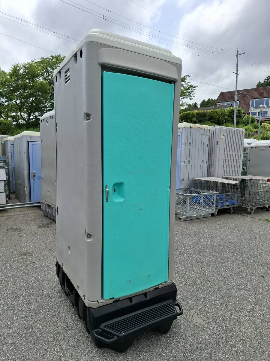 中古 洋式(新品被せ式) 汲取り 仮設トイレ 軽水洗(簡易水洗) フットポンプ式 .サイズ 横幅870×奥行1,550×高さ2,580 格安配送