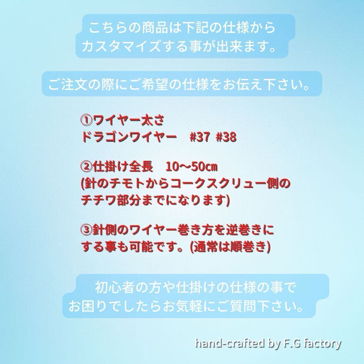 落札後、針の号数及びワイヤーの太さ、ワイヤーの長さをご指示していただくかたちになります。