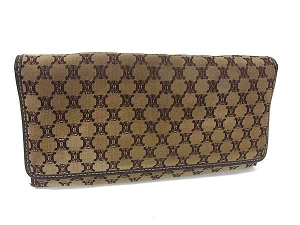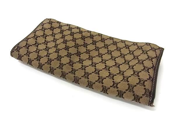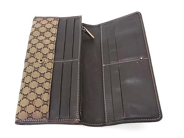 CELINE セリーヌ マカダム柄 キャンバス×レザー 二つ折り 長財布 ウォレット 札入れ 小銭入れ カード入れ ブラウン系 DH8609