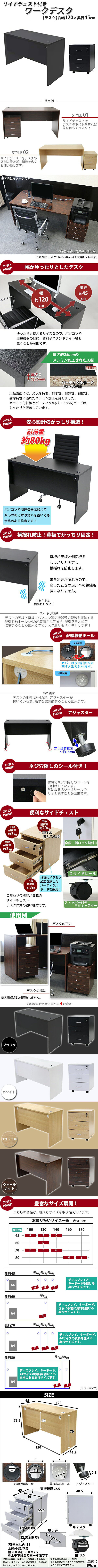| 商品サイズ | ■本体寸法・・・デスク:約W120×D45×H73.5(cm) サイドチェスト:W約40×D約48.5×H約55.5(cm) ■梱包寸法(2個口)・・・デスク:約W128×D55×H13(cm) サイドチェスト:W約47×D約56×H約52(cm) |