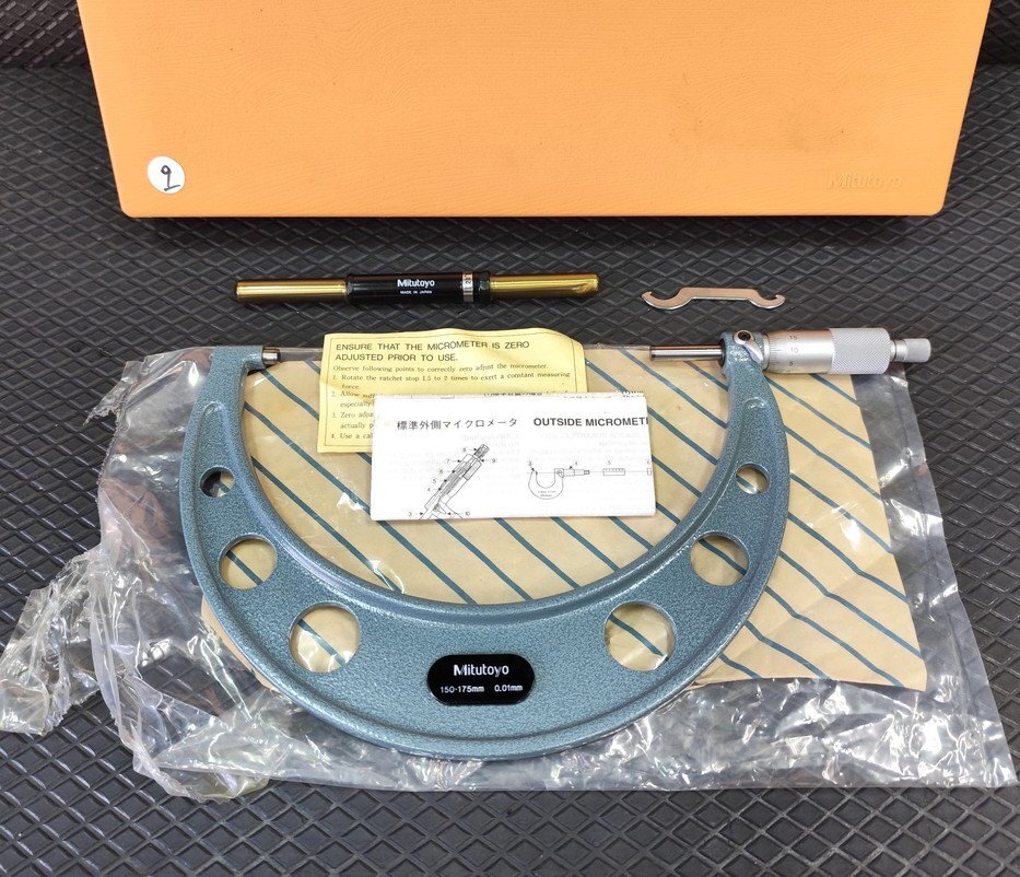 商品の状態 | ●ミツトヨ 150~175mm マイクロメーター、良中古品です。 型番103-143 OM-175 ●目量0.01mm 測定範囲150~175mm 基準棒、スパナ付属 ●ご参考までに、同型番新品のメーカー希望小売価格 (税抜) ¥26,700 とのことです。 ●中古ですので小傷等ありますが、使用感の少ない良中古品です。 動きは確認してあり良好です。 固着や引っかかりなくスムーズに動きラチェットやシンブルの回転も問題ありません。 ●中古品につき、商品は現状有姿販売・画像のものがすべてです。 新品時の付属品等は把握しておりませんので、画像からご自身でご判断下さい。 ★他にもマイクロ各種出品中ですよろしかったらどうぞ→クリック |