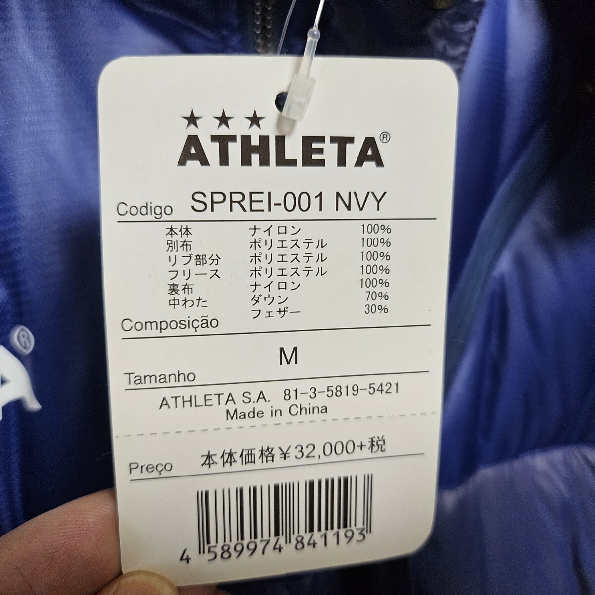 新品タグ付き 定価35200円 ATHLETA O-Rei アスレタ ダウン ベンチコート ロング プレミアムライン ネイビー 防寒