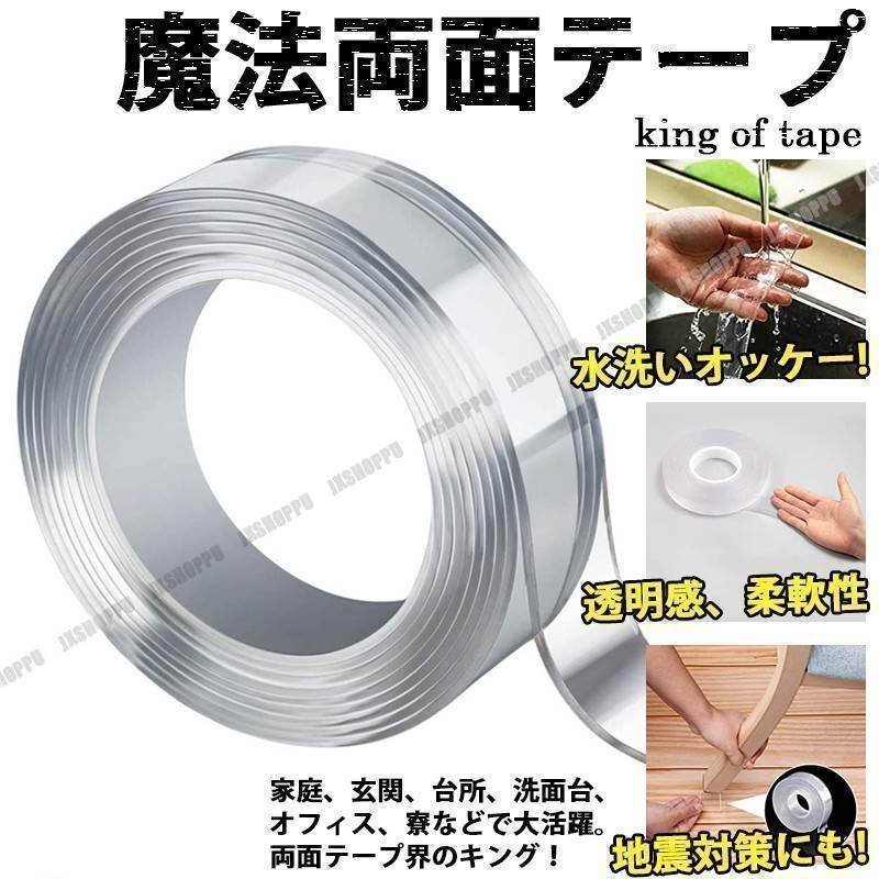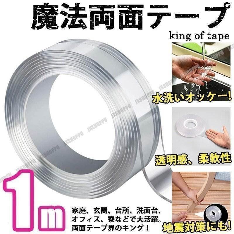 送料0円 両面テープ クリア 魔法テープ 【1m】 幅3cm 厚さ2mm 強力 洗って繰り返し使える 耐熱 滑り止め 多機能 家庭 車 オフィス 学校