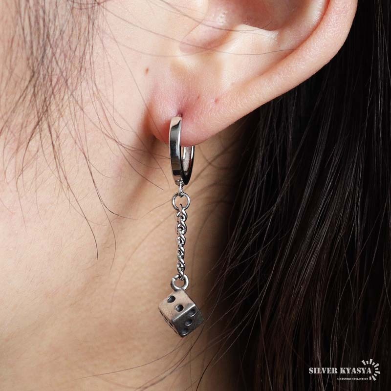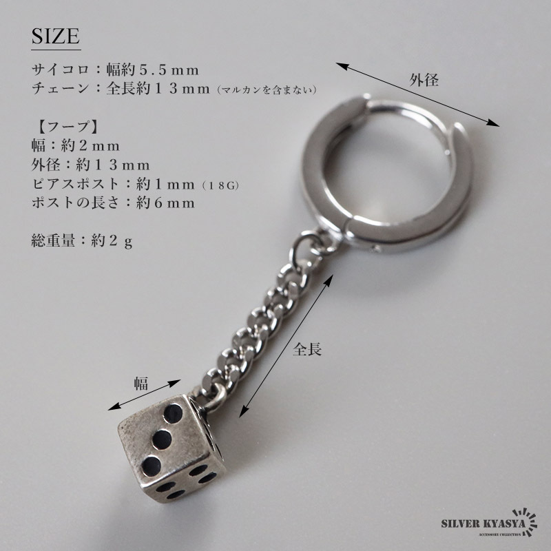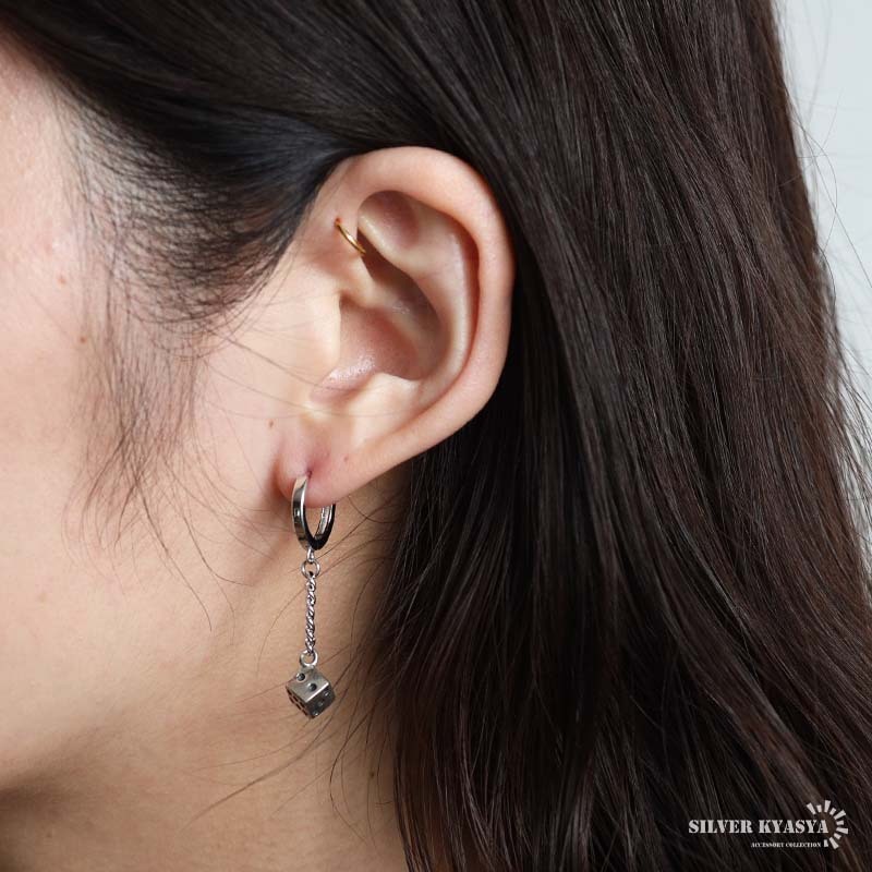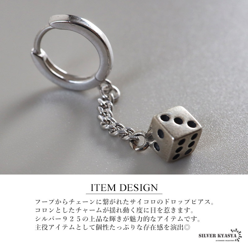 シルバー925 サイコロピアス ダイス ドロップピアス フープピアス シルバー 喜平チェーン 片耳1点 レディース 金アレ対応