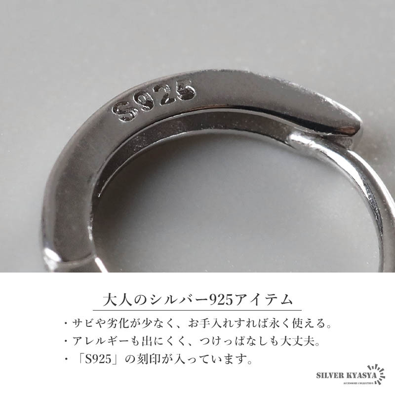 大人の魅力あふれるシルバー925素材を採用。「925」とは銀の含有率(純度)92.5%を示し、一般的に純銀として扱われます。サビや劣化等がほとんどなく金属アレルギーも出にくいとされており、アクセサリーとしての実用性もある金属です。