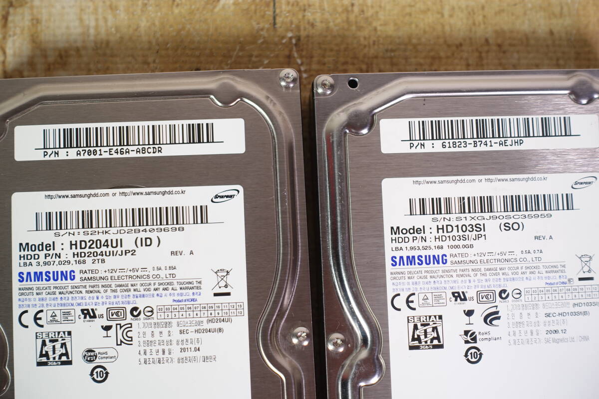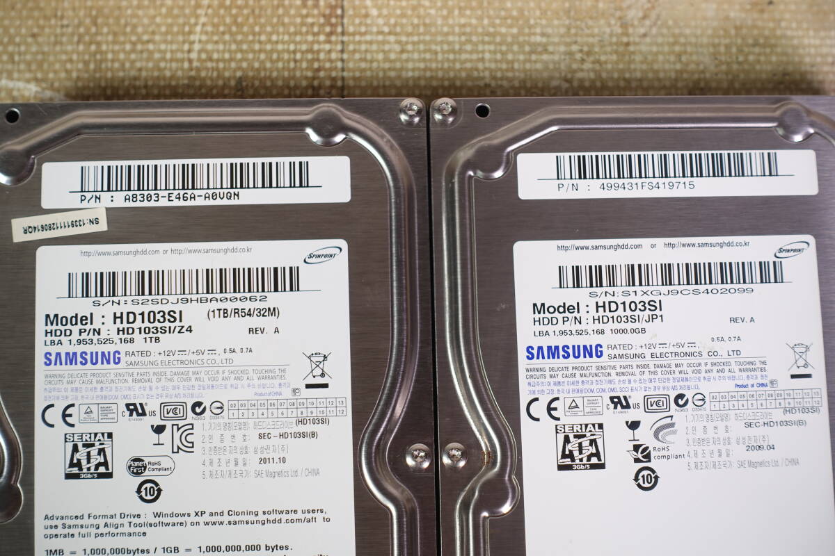 【品名】 SAMSUNG 3.5インチ HDD HD103SI 1TB×3台 / HD204UI 2TB×1台 計4台セット 管理番号2463 【付属品等】 HDD HD103SI 1TB×3台 / HD204UI 2TB×1台 計4台 【お品の状態】 PCにてHDDステータス確認(健康状態 正常)・データ消去済みです。 使用時間等は写真をご確認ください。 写真にあるものが商品全てとなります。 商品の程度につきましては、個人差がございますので 写真での確認およびご判断をお願いいたします。 気になる方、神経質な方は、入札をご遠慮ください。 上記および中古商品としての出品であることをご理解いただける方のみご入札をお願いいたします。 |