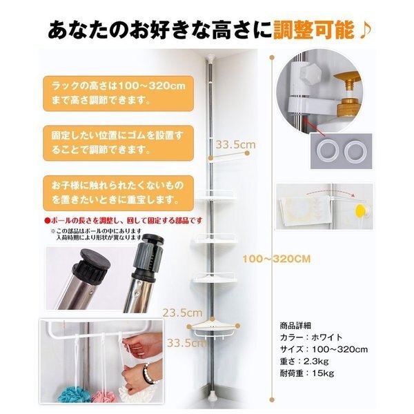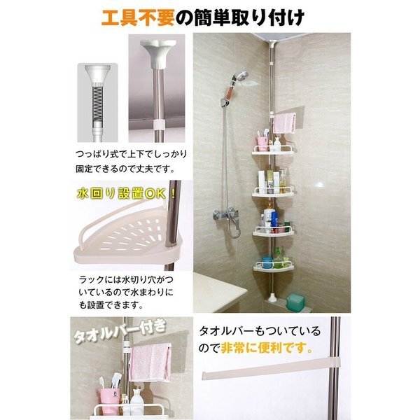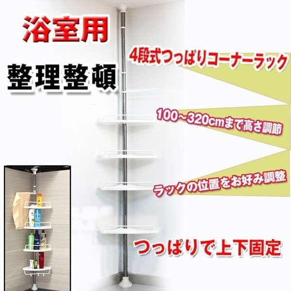 【引っ越し応援SALE!】送料無料 ラック バス用品 バスラック コーナー おしゃれ 収納ラック 突っ張りラック 4段 お風呂 浴室 zk083
