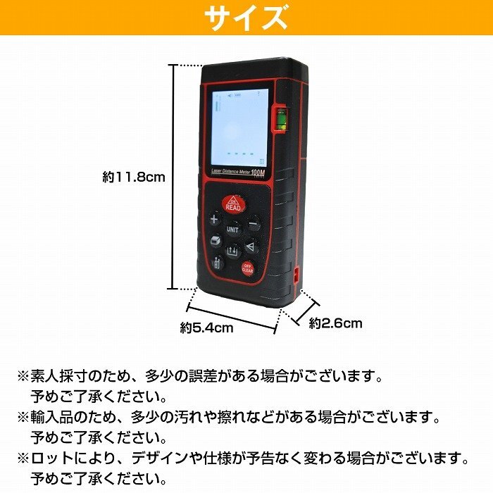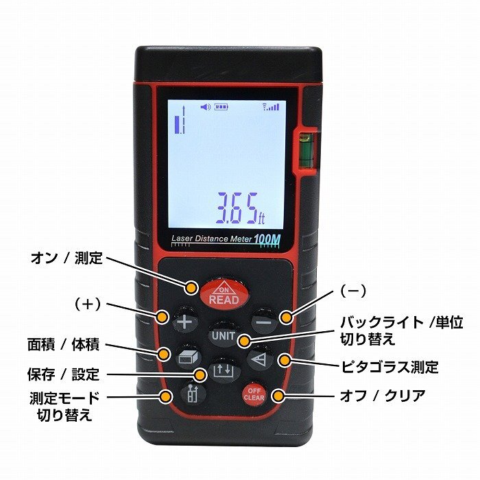 レーザー 距離計 最大100m 距離 面積 体積 ピタゴラス 自動計算 防水仕様 距離 測定器 測量 機器 屋内 屋外 引越し 建築 DIY