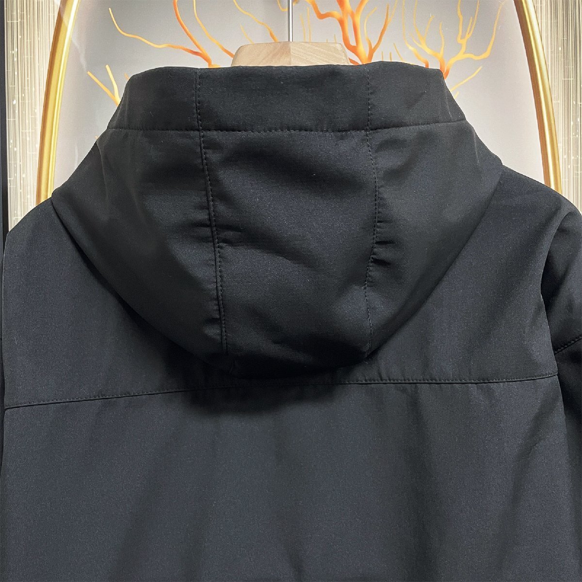 モノクロはどんなシーンでも使える、着る服を選ばず、コーディネートの幅が増えます。フロントのファスナーも程よいアクセントとなり、スタイリッシュなイメージに仕上げられております。ジッパーを上げてから、スタンドカラーや小顔効果になりますので、防風性UP!フードは取り外し不可となり、ドローコードが付けられている為に、絞ることにより風の侵入を防ぐことが可能。両サイドには大きなジップポケット配置、収納力が抜群!!携帯や鍵などの小物を安全に収納可能です。