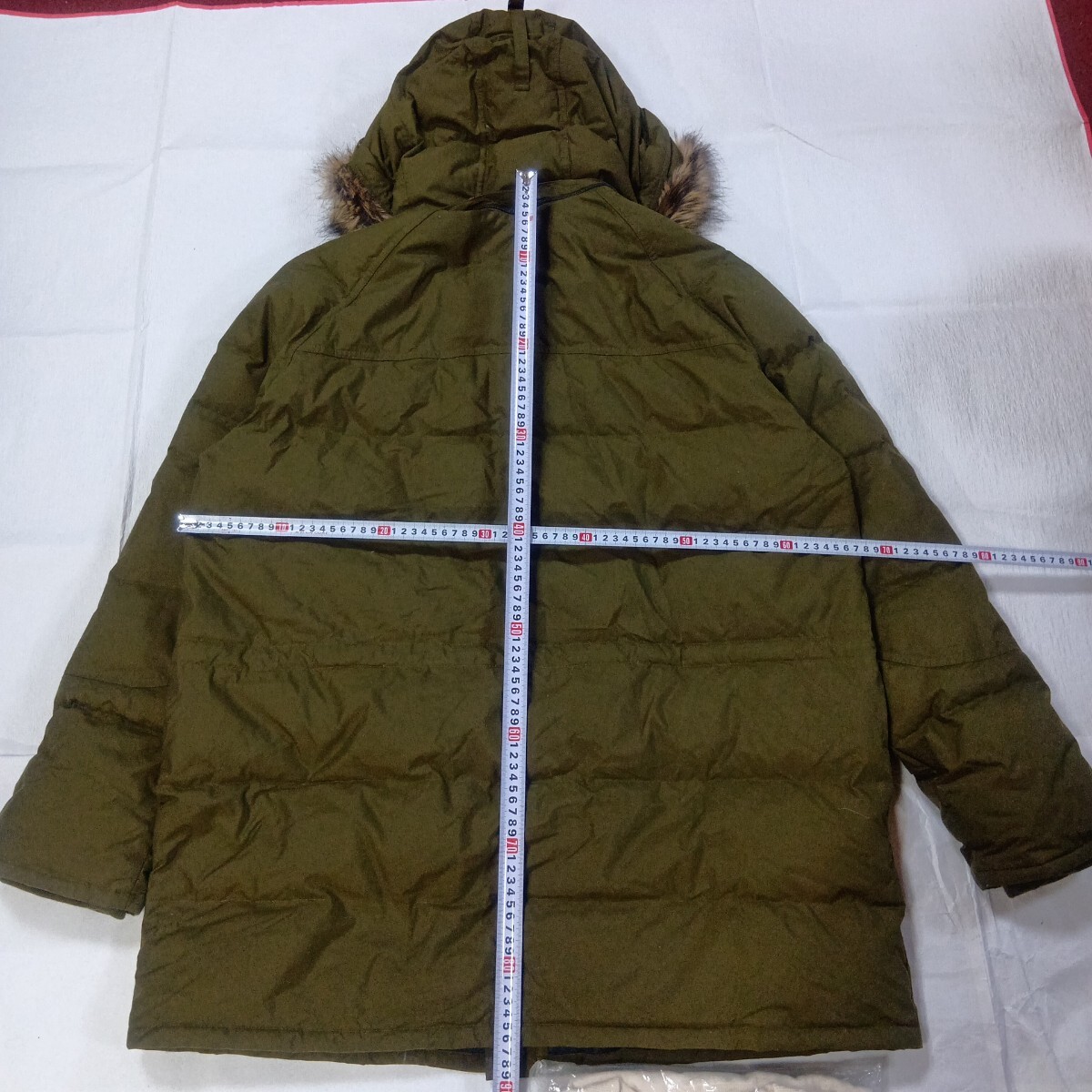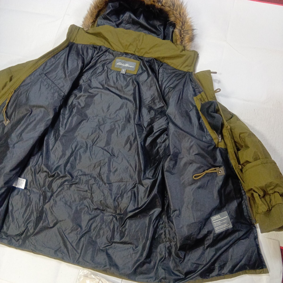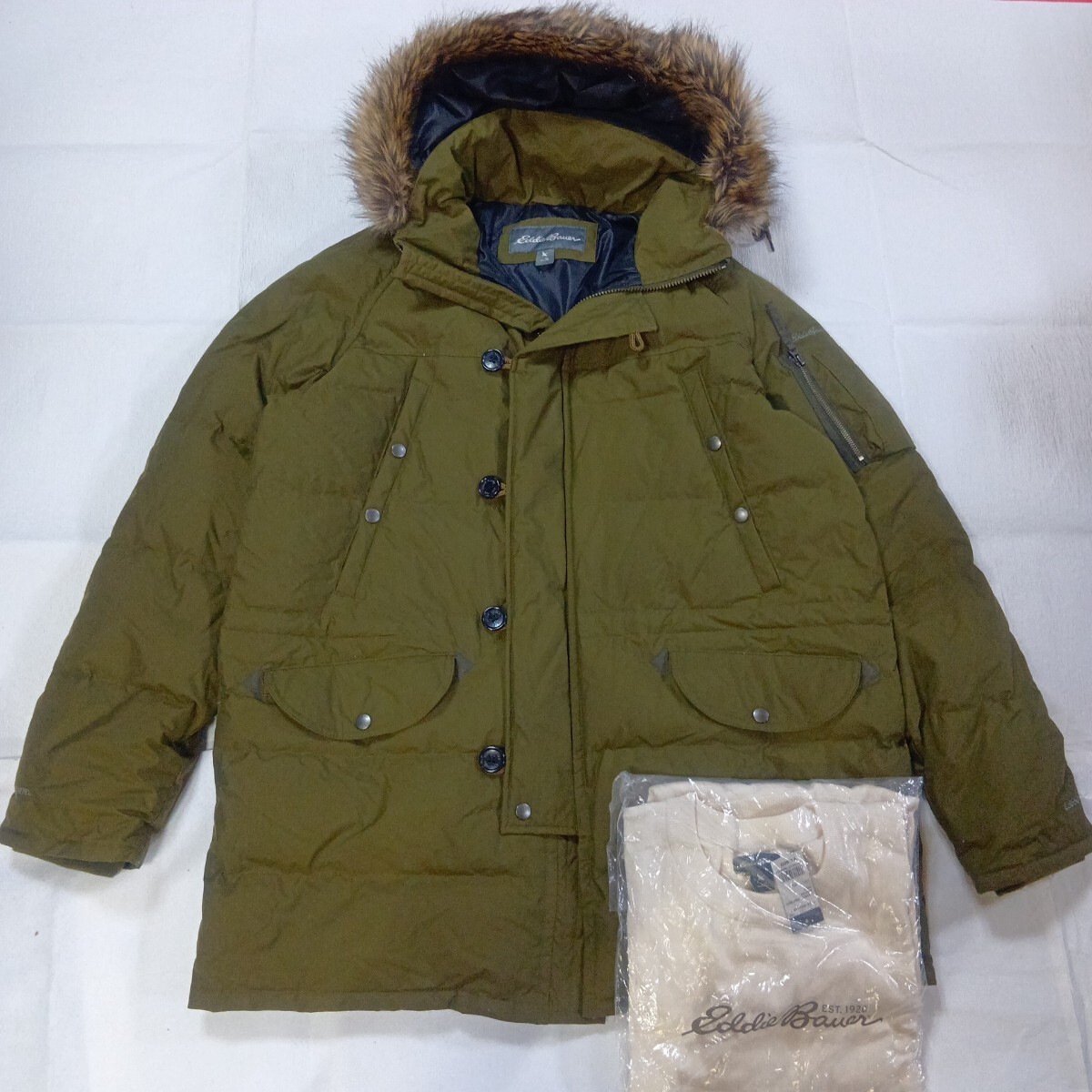 B2371 エディーバウアー フェイクファー フード取外OK ダウンジャケット ミリタリー フライト メンズXL 650 カーキ 綿ニット 2点 N-3B