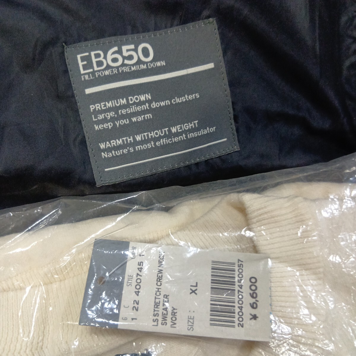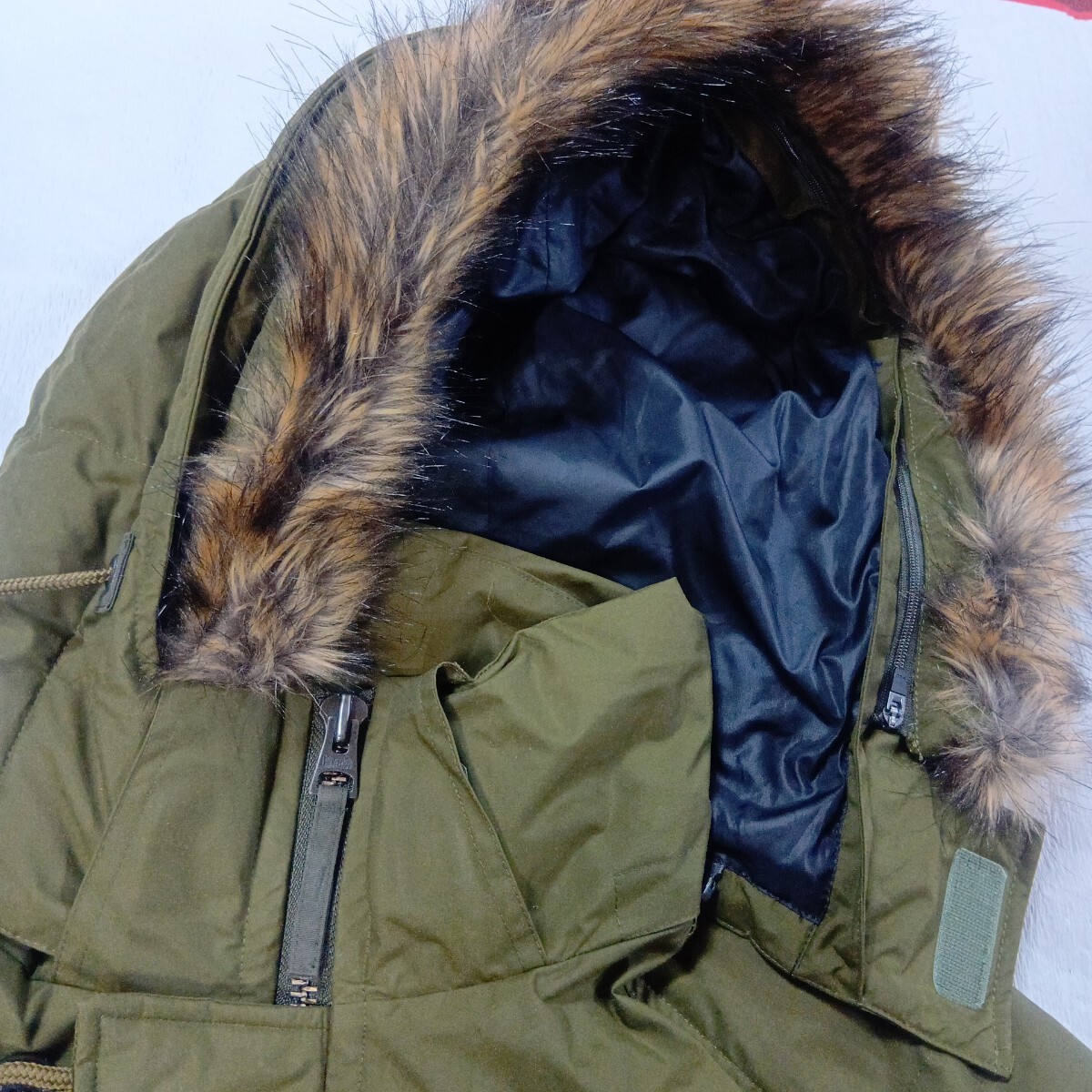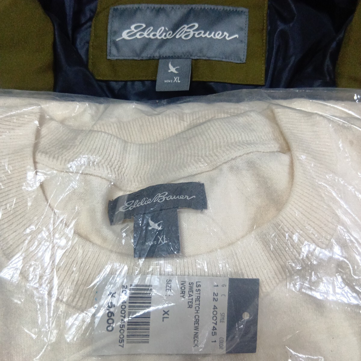 B2371 エディーバウアー フェイクファー フード取外OK ダウンジャケット ミリタリー フライト メンズXL 650 カーキ 綿ニット 2点 N-3B