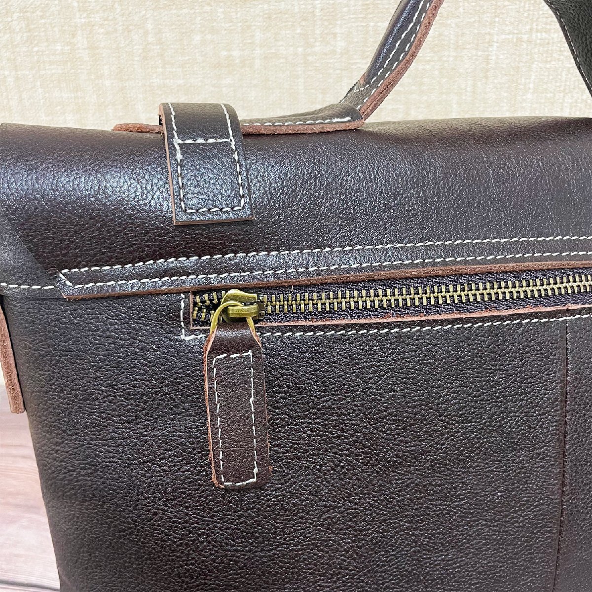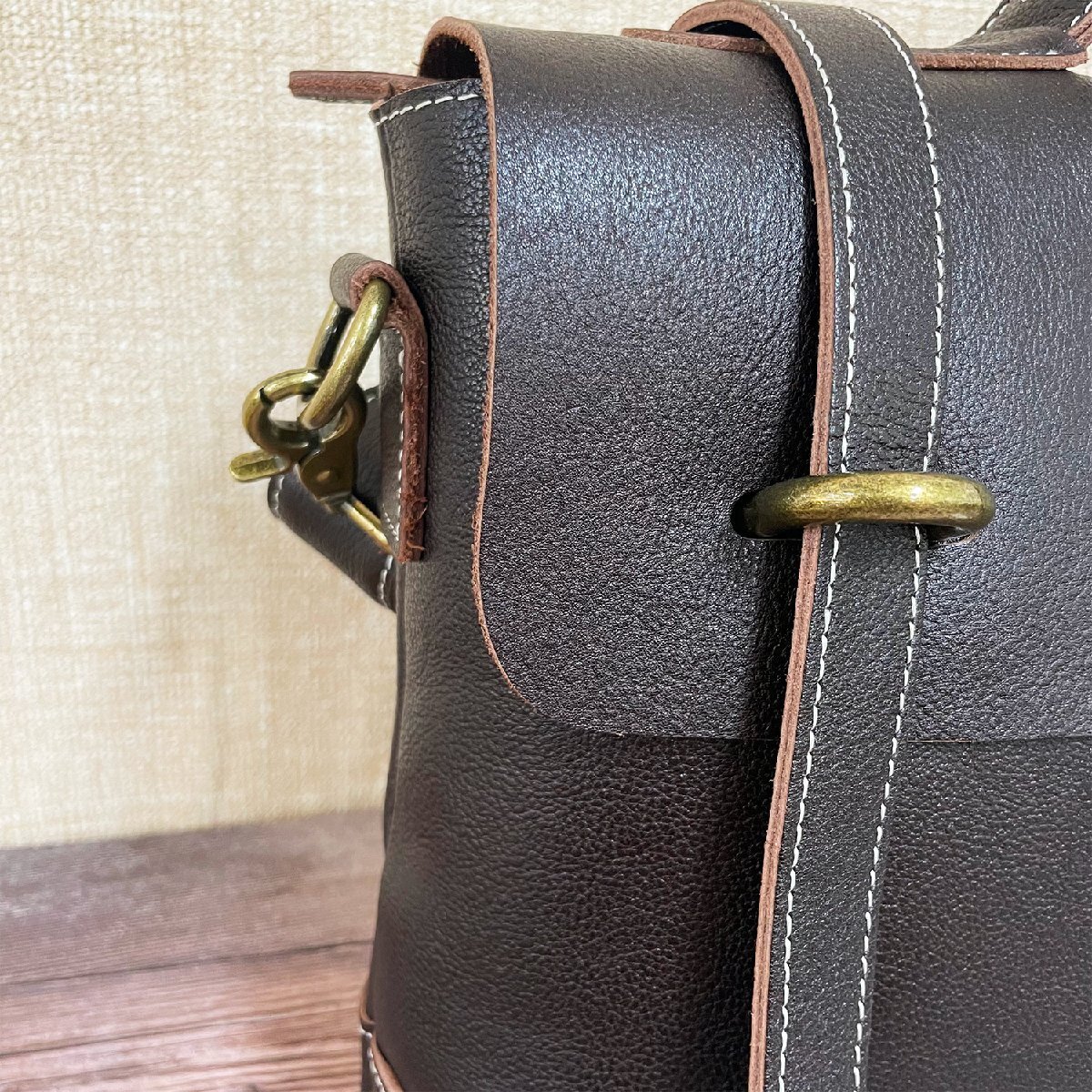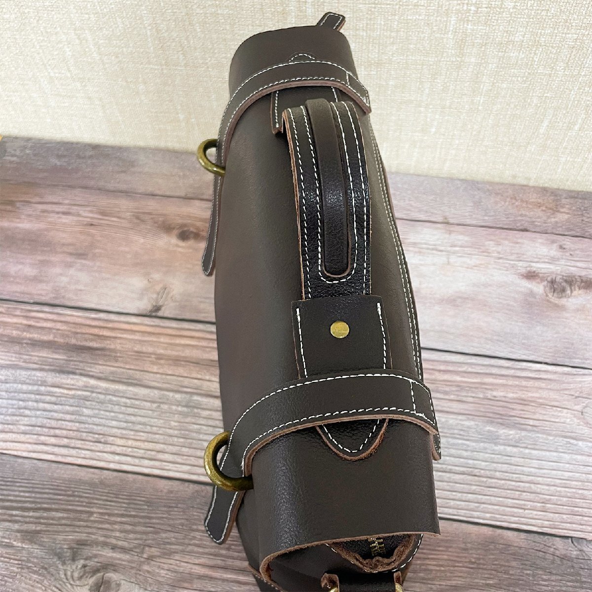 素材には耐久性の高い本革を使用、使用するほどに劣化する合皮と違い、使い込むほどに味が増していきます。同じ位の厚みがある革と比較しても、こちらの高級革は、柔らかくしっとりとした手触りが特徴です。重い荷物で使用していくにつれ傷みやすい部分も丁寧に縫製してあるので、長年愛着持って使用していただけます。