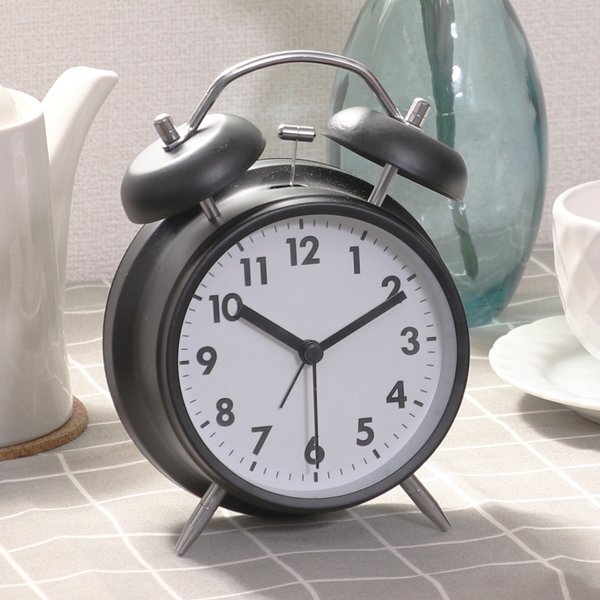 目覚まし時計 置き時計 アナログ 時計 おしゃれ ベル 卓上 連続秒針 レトロ 新生活 プレゼント 送料無料 7M◇ ベル置時計:ブラック