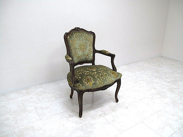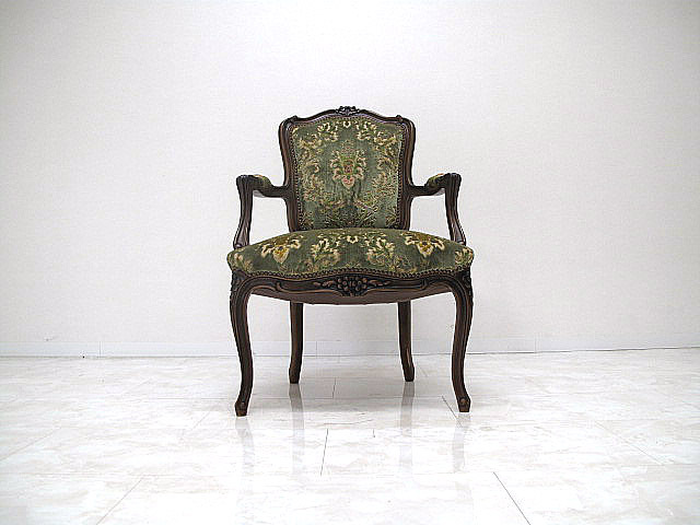 美品 karimoku カリモク domani ドマーニ ルイ(Louis XV)シリーズ ロココ様式アームチェア  ダイニングチェア 彫刻 猫脚 金華山張り