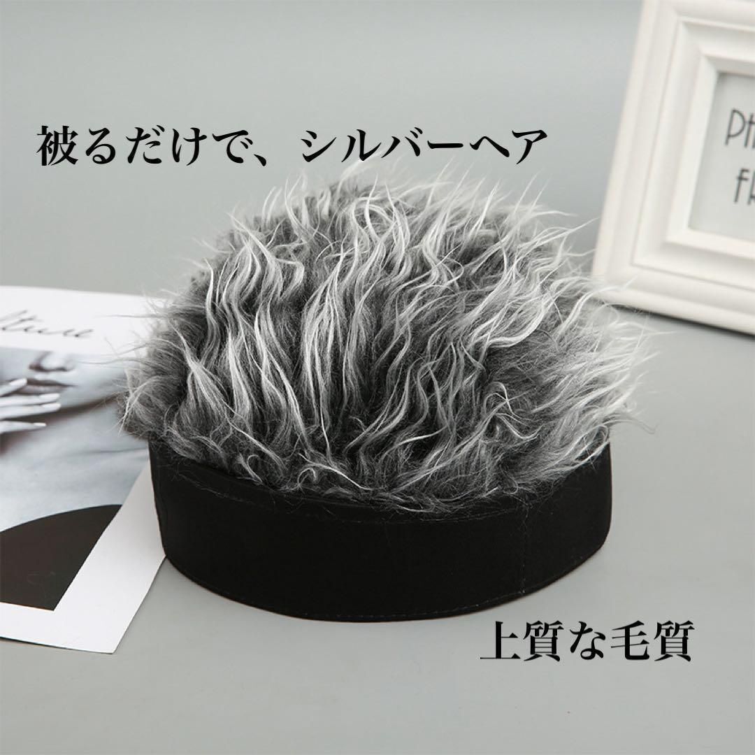 遊び心を兼ね備えたお洒落なウィッグハット♪男女兼用で、シルバーフサフサヘアに変身できる優れアイテムです!