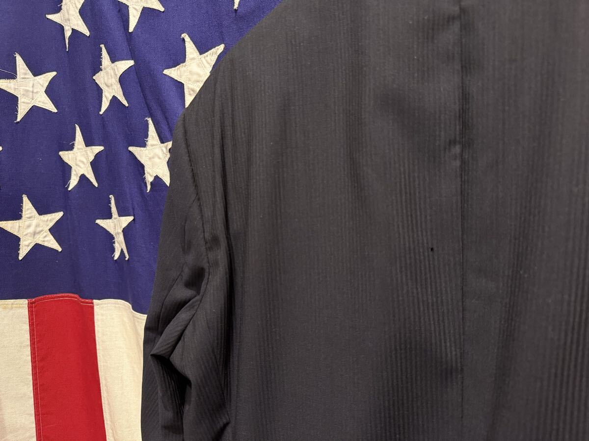 状態:タグ付き未使用ですが、自宅保管につきご理解いただける方のみご入札ください。ジャケット1ヶ所穴あり。画像にてよくご確認をお願い致します。