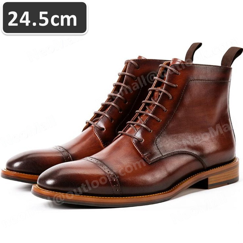 送料込☆ 本革 牛革 メンズ ショートブーツ ブラウン サイズ 24.5cm 革靴 靴 カジュアル 屈曲性 通勤 軽量 インポート品【n048】