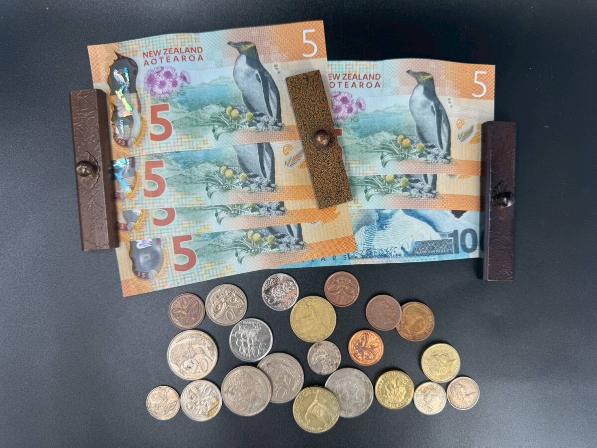 枚数:紙幣・5ドル×6、10ドル×1 硬貨・5セント×4、10セント×7、20セント×4、50セント×1、1ドル×3、2ドル×2