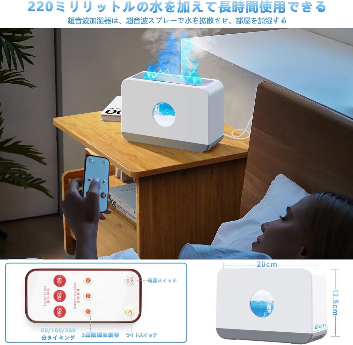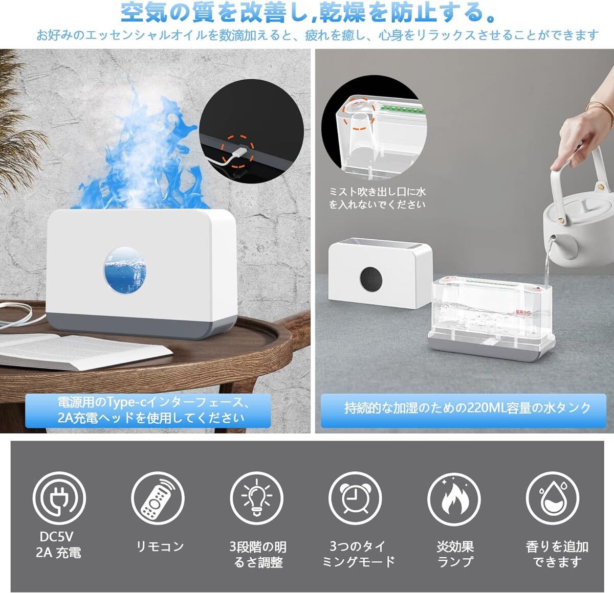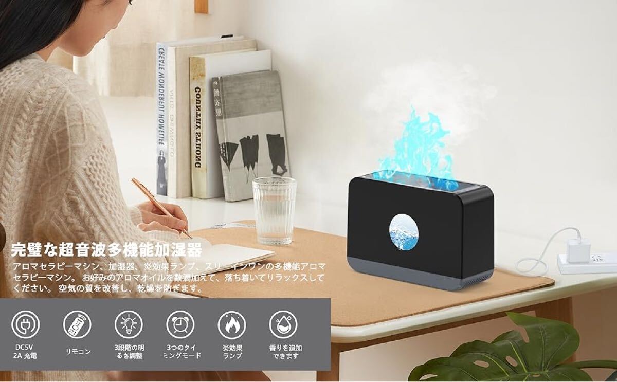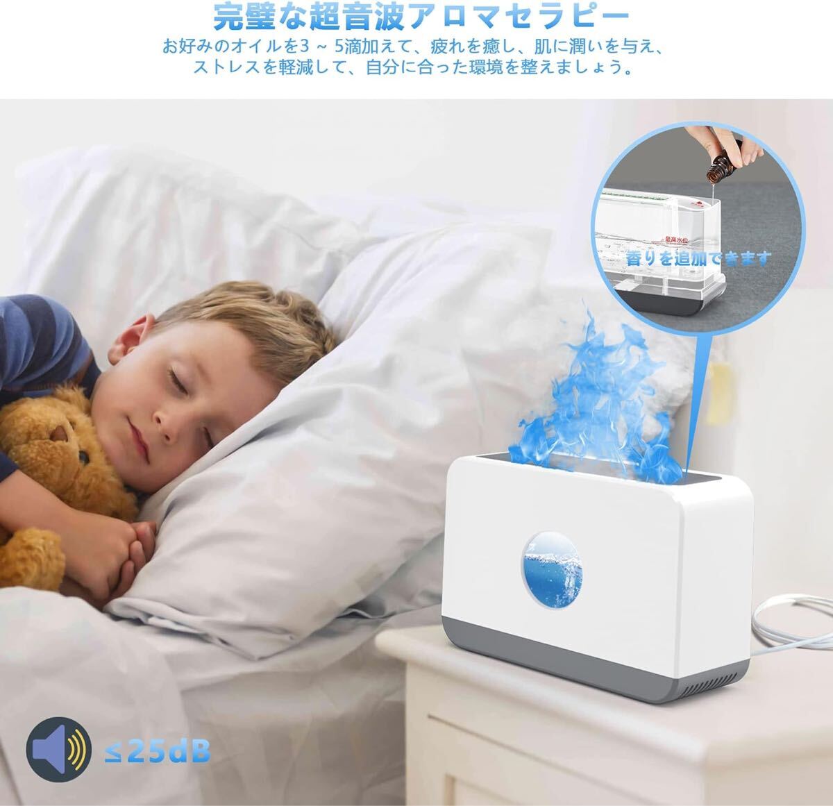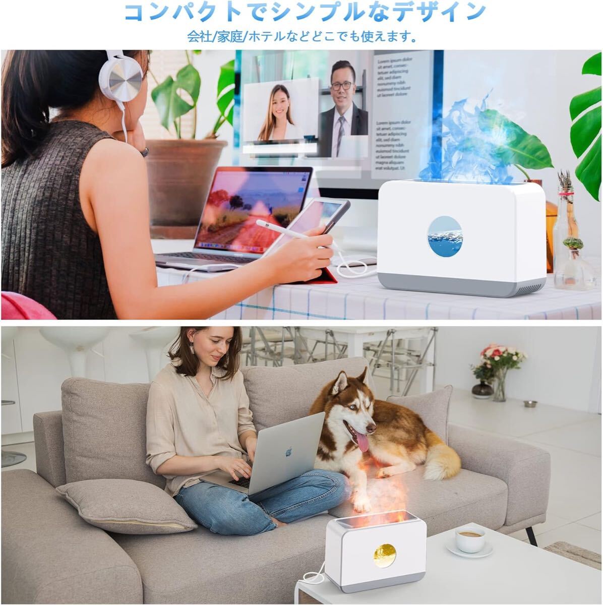 【アロマディフューザー、加湿、ナイトライト 3 IN 1】 アロマディフューザー、加湿器、火炎効果灯、以上はすべて弊社の多機能なアロマディフューザーです。お好みのアロマオイルを数滴加えると、疲れを癒し、リラックスすることができます。空気の質を改善し、乾燥を防ぎます。