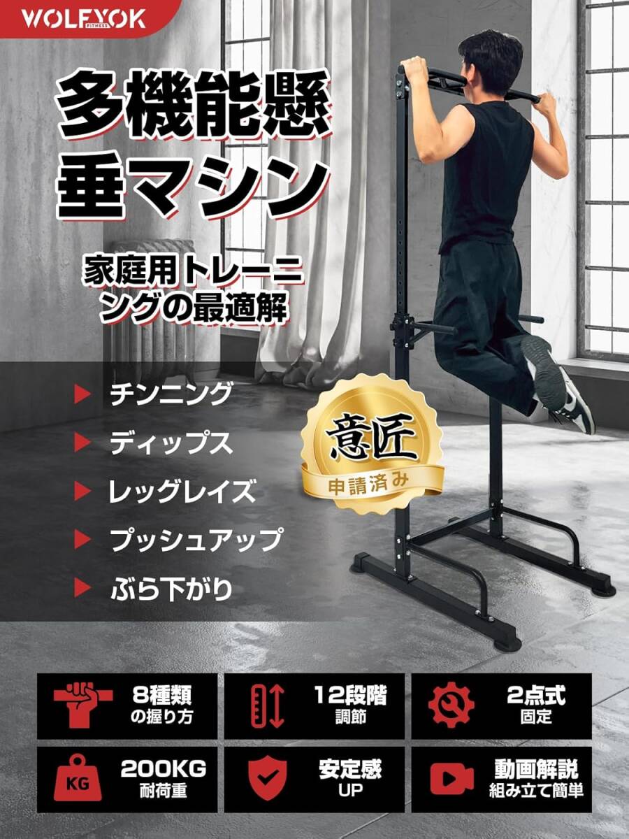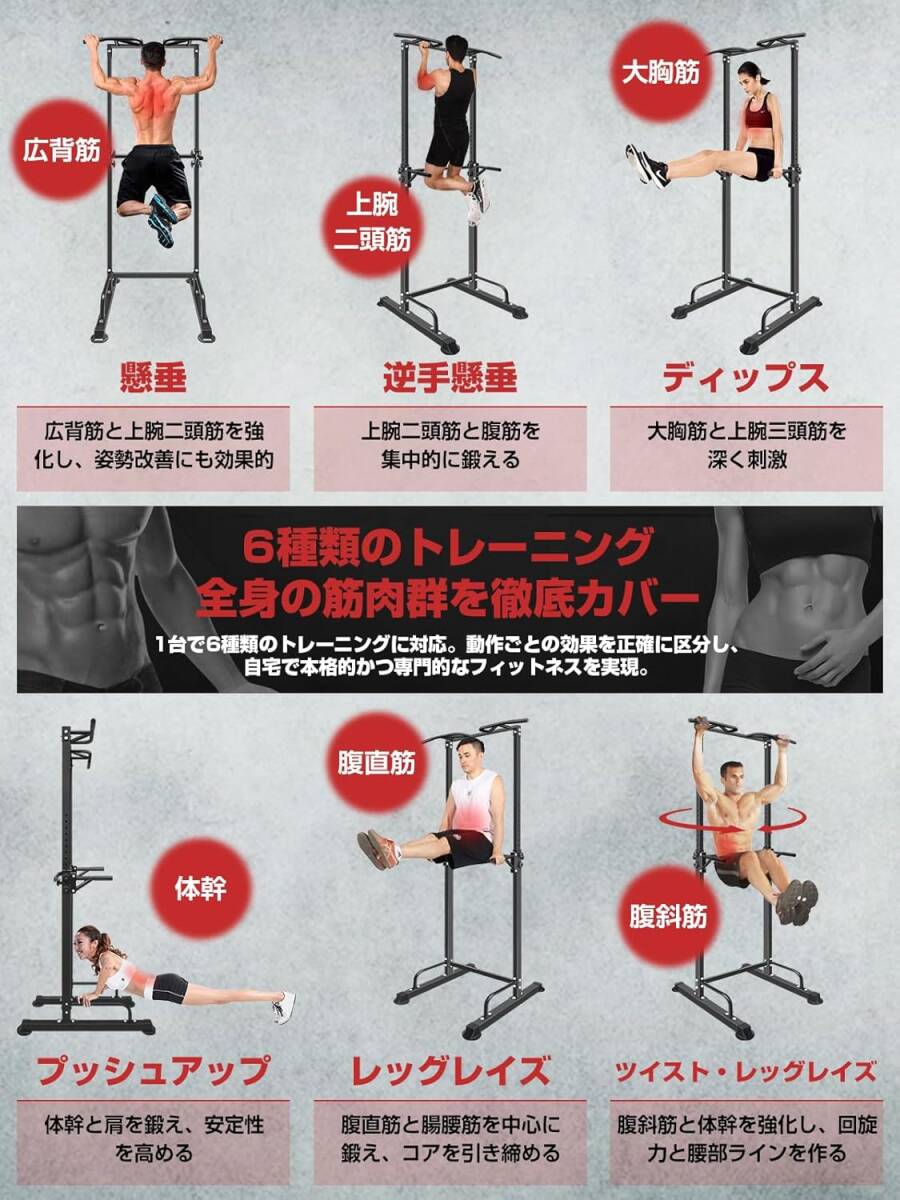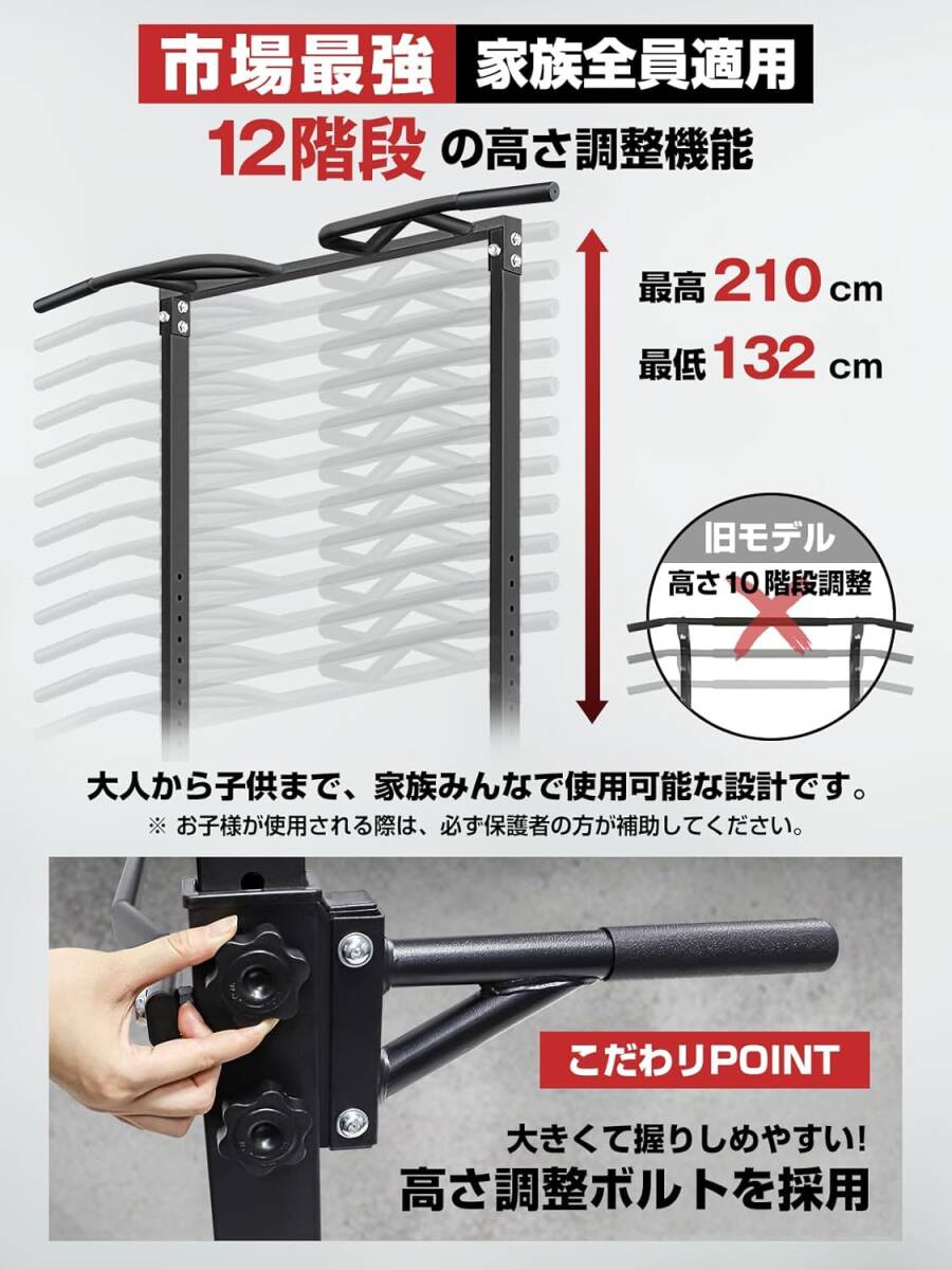 ブラック色 懸垂マシン 【多機能懸垂バー・12種トレーニング対応】 懸垂 耐荷重200kg 12段調節