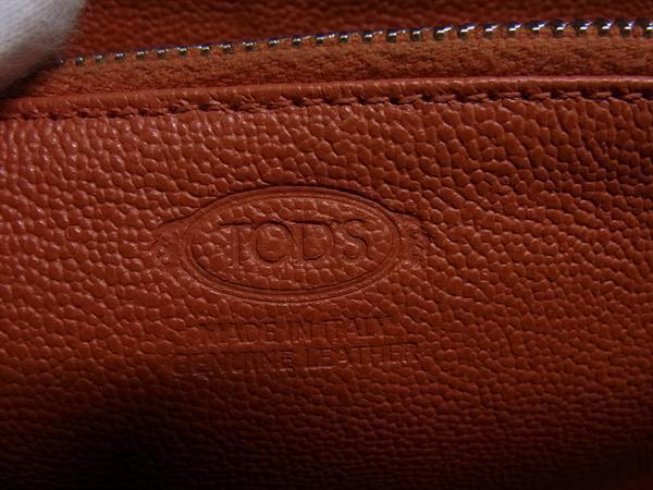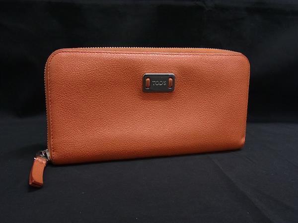 1円 TODS トッズ レザー ラウンドファスナー 長財布 ウォレット 小銭入れ 札入れ カード入れ レディース オレンジ系 GA6469
