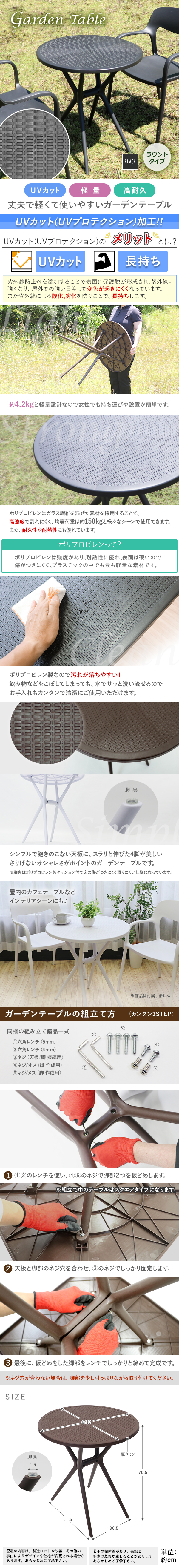 | 商品名 | 送料無料 プラスチックテーブル ガーデンテーブル UVカット ラウンドテーブル 軽量 頑丈 コンパクトサイズ シンプルデザイン お手入れカンタン 簡単組立 インテリア ガーデン テーブル ポリプロピレン PP プラスチック gtabled |
