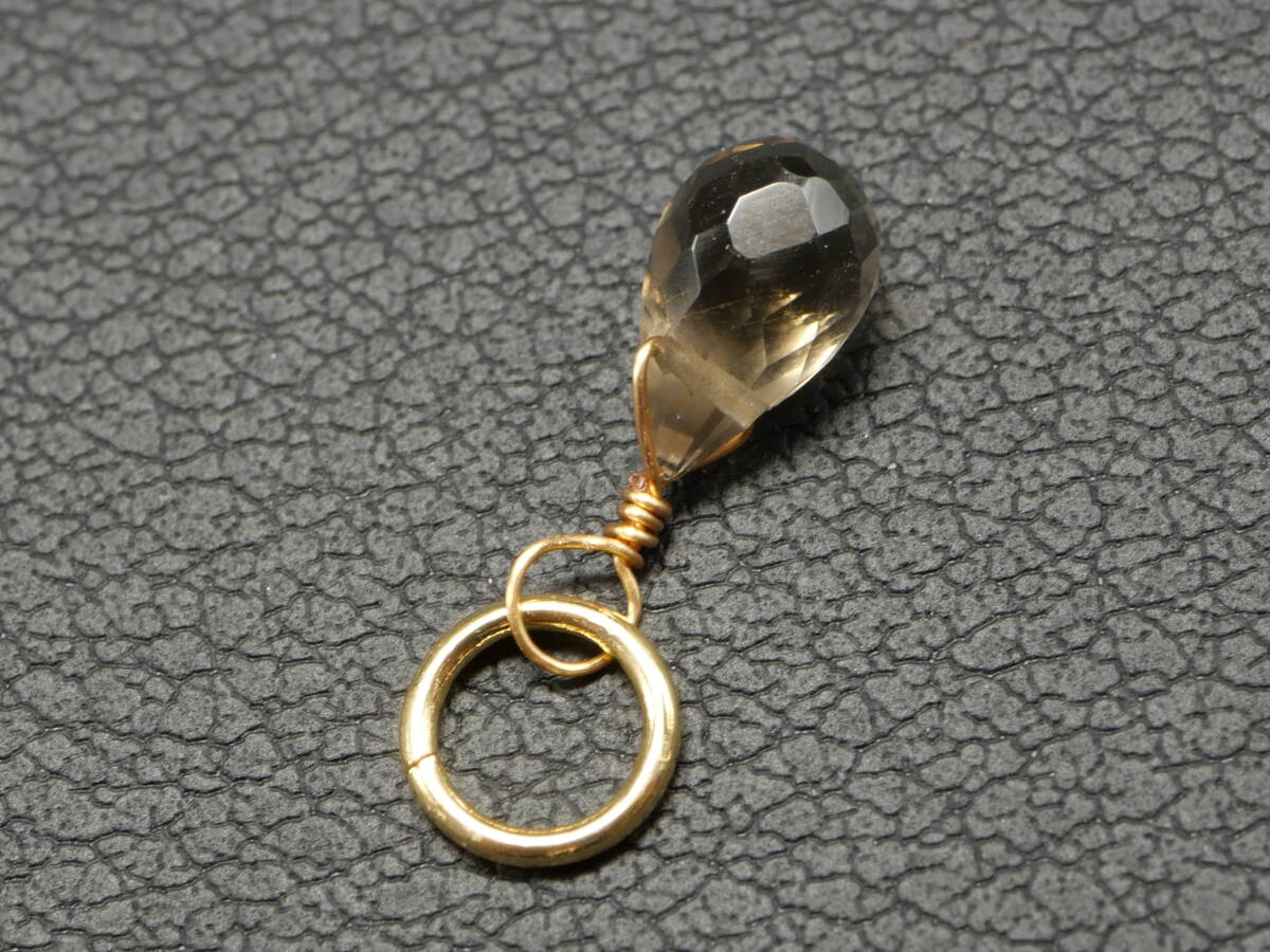 【14KGF】ドロップカットスモーキークォーツの1粒ペンダントトップ 548