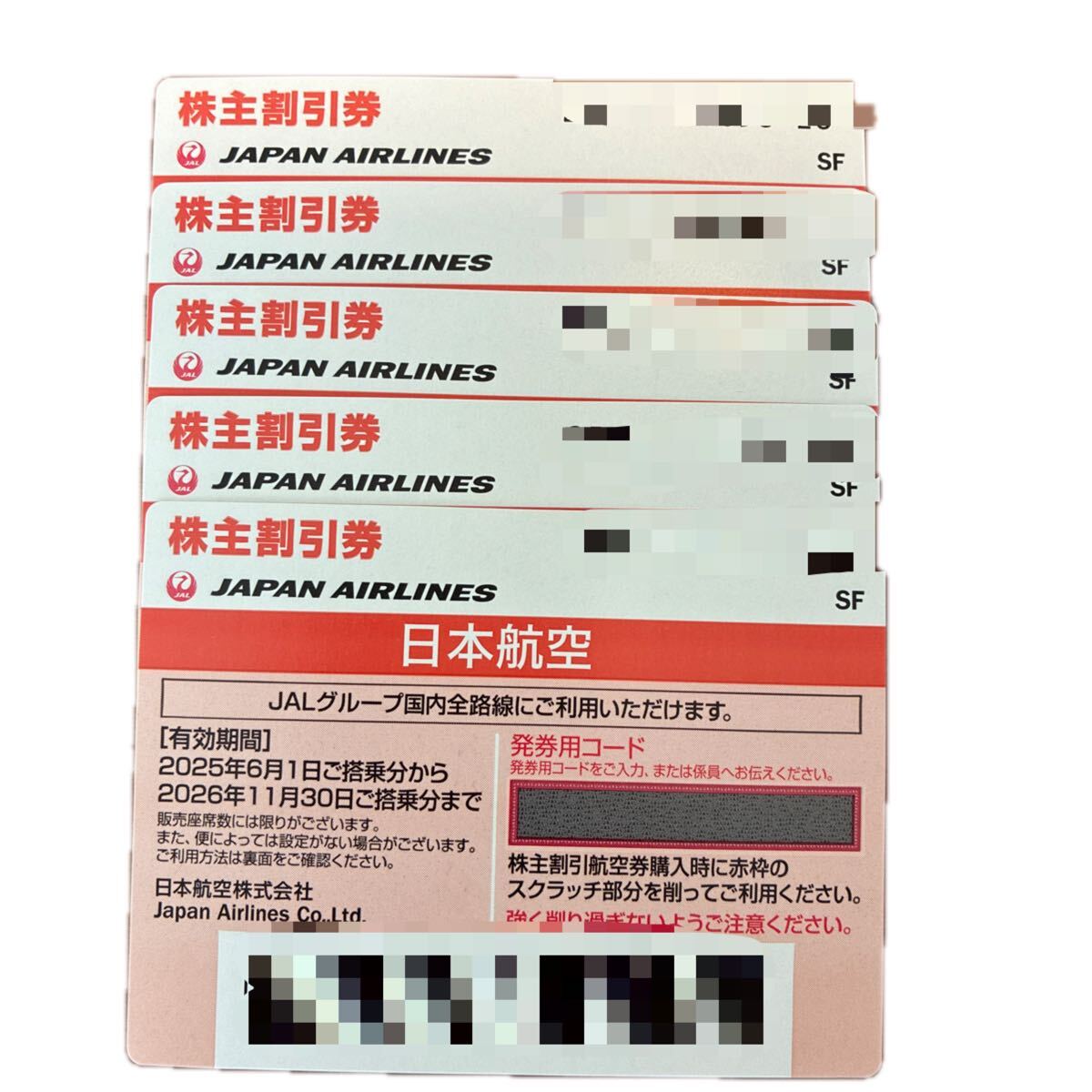 JALの株主優待券5枚セットです。