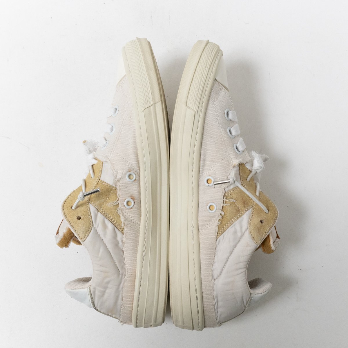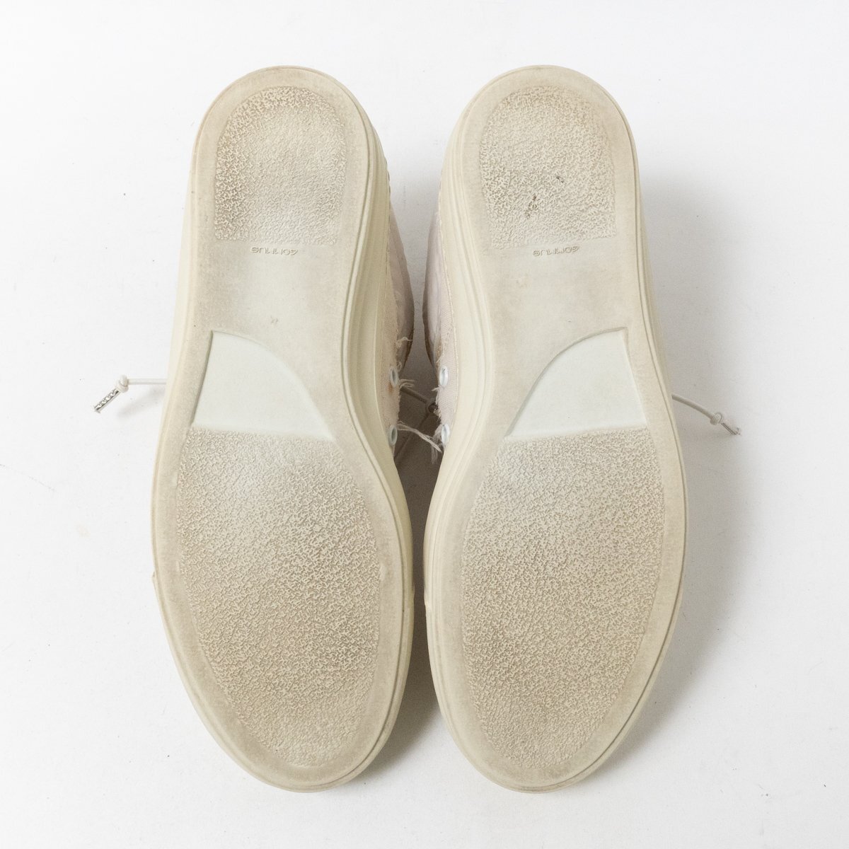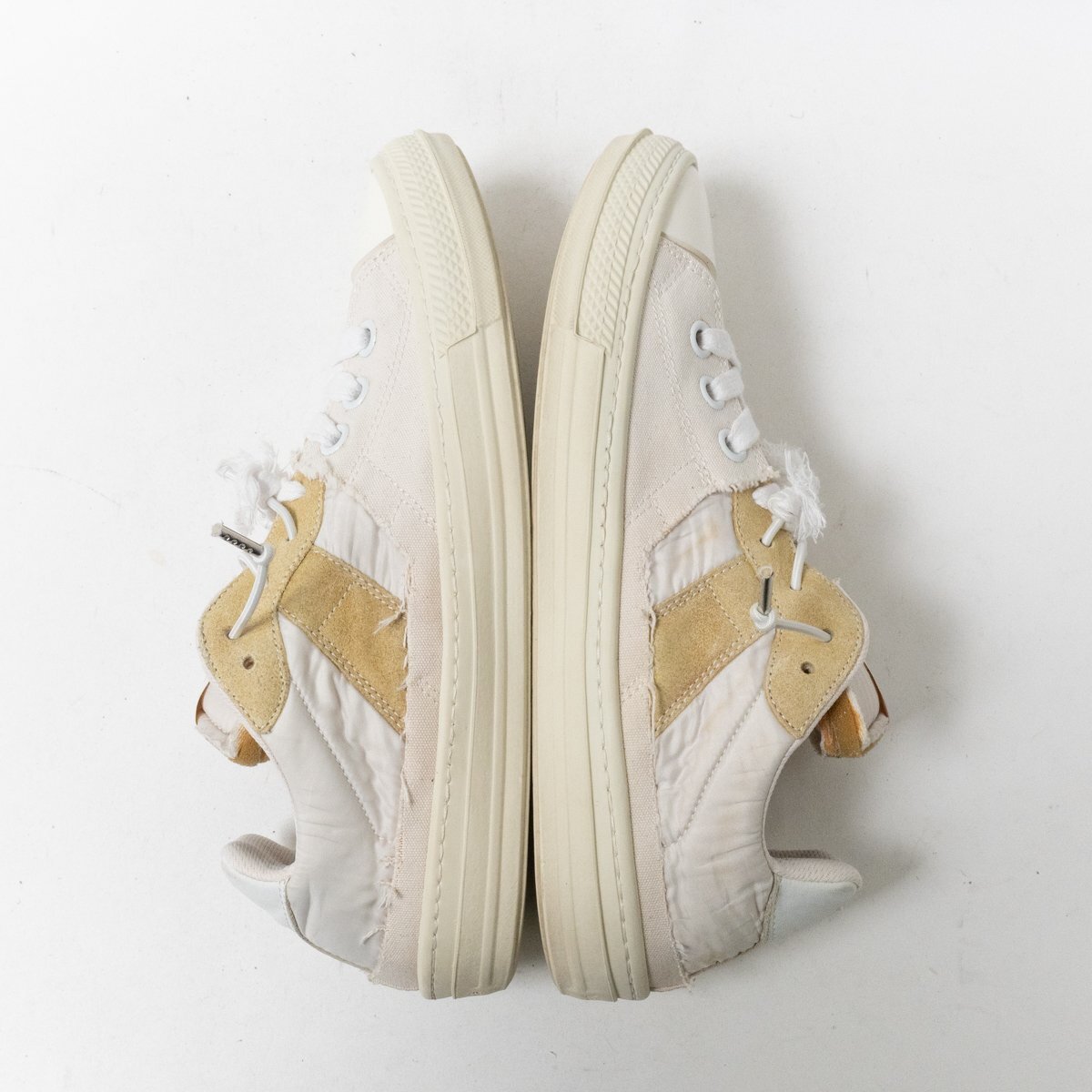 | 状態 | E インナーソール欠損、履きジワ、ほつれ、紐汚れ、タン汚れ、インナーインソール汚れ、傷み、ソール汚れ・擦れ傷・2ミリ擦り減り、全体的に汚れと使用感あります。 |
