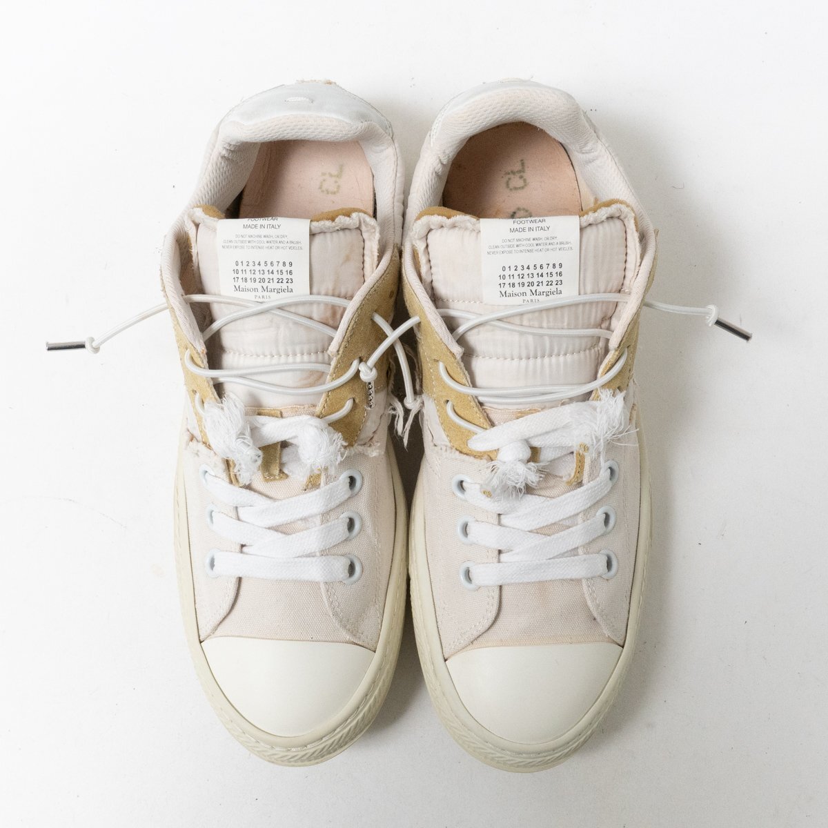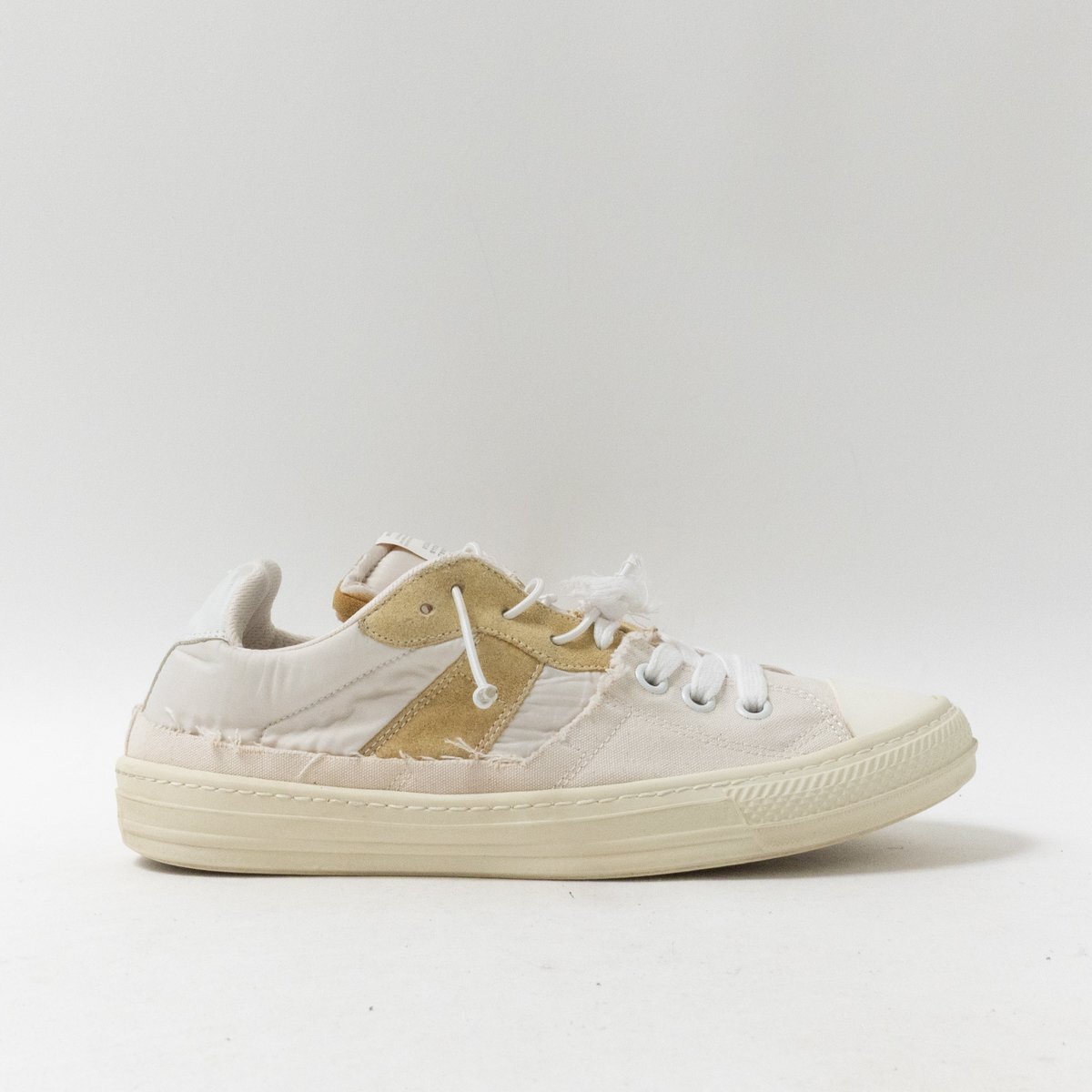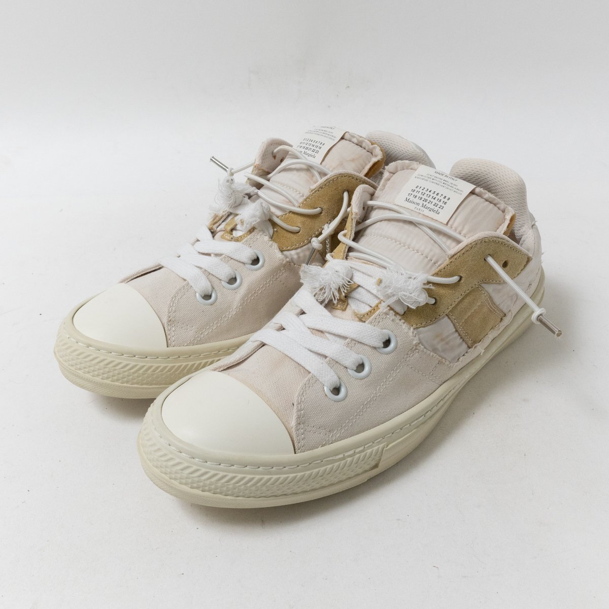 | 状態 | E インナーソール欠損、履きジワ、ほつれ、紐汚れ、タン汚れ、インナーインソール汚れ、傷み、ソール汚れ・擦れ傷・2ミリ擦り減り、全体的に汚れと使用感あります。 |