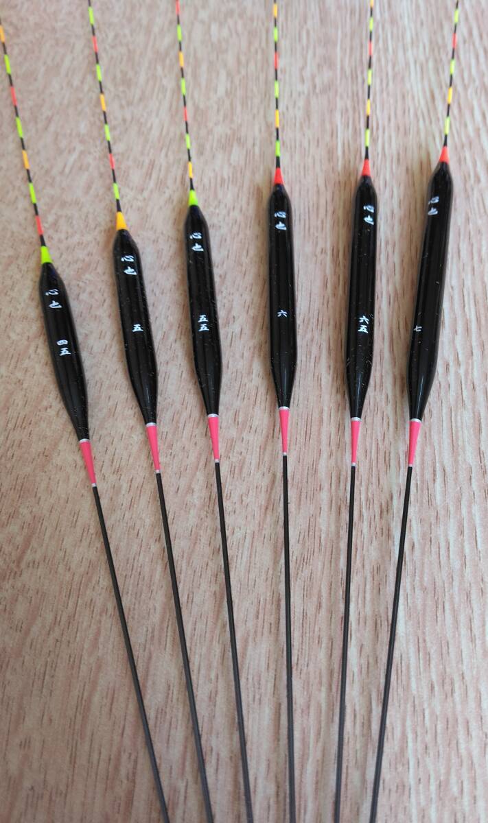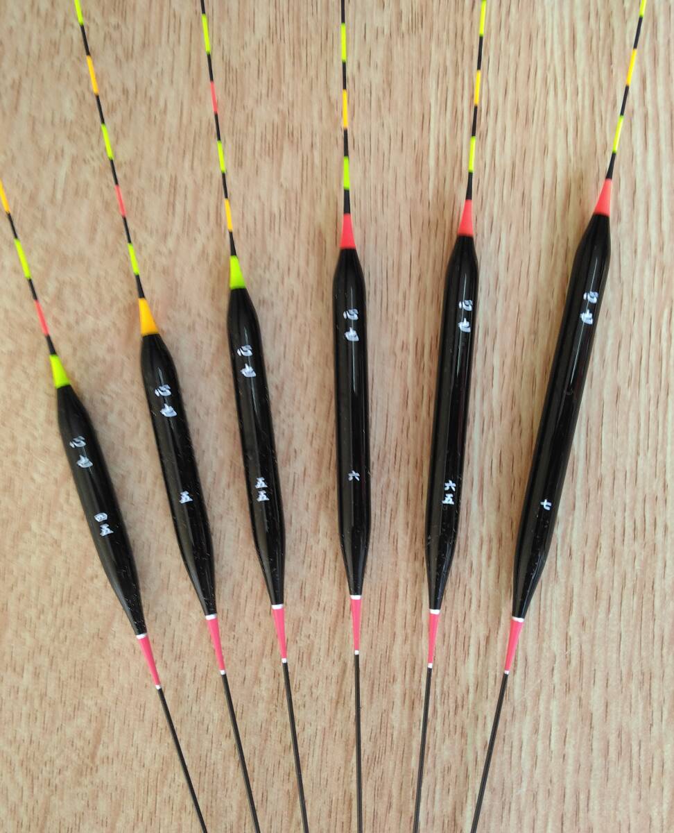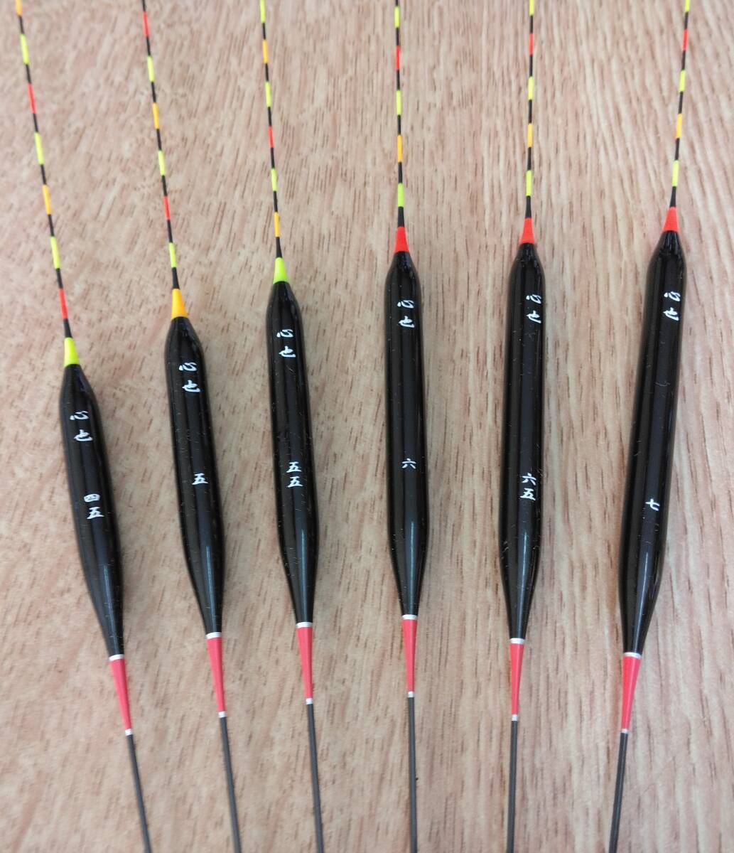 人気へらウキ、心也のチョーチングラスムク0.6ミリ(赤足)のNO.4.5~7の6本セットになります。