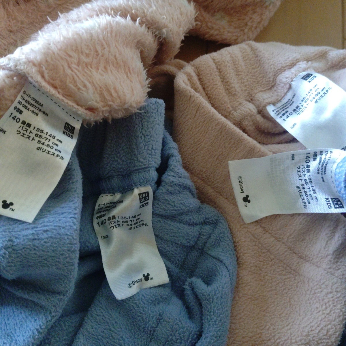 ユニクロのパジャマ140cm2着セットです。写真のもの全てです。毛羽立ち、色あせ、使用感あります。ひどく目立つ汚れ、破れなど見当たりませんが、子供が着用していたので、細かい点気になる方はご遠慮ください。