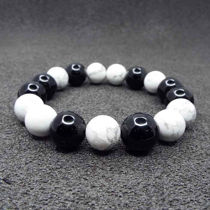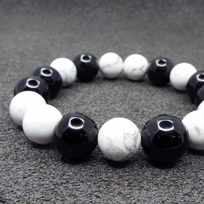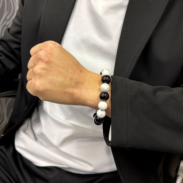 | 【STONE KITCHEN天然石パワーストーン】 オニキスとホワイトターコイズの組み合わせは 持ち主のエネルギーを強くさせ 悪いエネルギーを寄せ付けなくなる組み合わせと言えます☆ 守護作用をもたらし力を強化する神聖な石とされる相性です。 自分の周囲にある悪い気を 良い気にする働きがあると言われています。 内周:約19cm 玉サイズ:オニキス 約14mm ハウライト ホワイトターコイズ 約12mm 1点 注意事項 ※金属部分は汗や汚れ等で変色する場合がございます。気になる場合は 金属磨きや布等で軽くふき取る事をおすすめします。 ※石の種類によっては、艶を引き出すことを目的として、ワックスや着色加工がされているものもあります。 ※表示のサイズは必ずしも最大値・最小値のサイズのものが入っているわけではございません。 ※天然石のため同じものでも色味・模様などが異なります。 ※照明の具合で実際とは色合いが異なる場合がございます。 また、天然素材特有のクラック・内包物を有する場合がございます。予めご了承下さい。 | |||