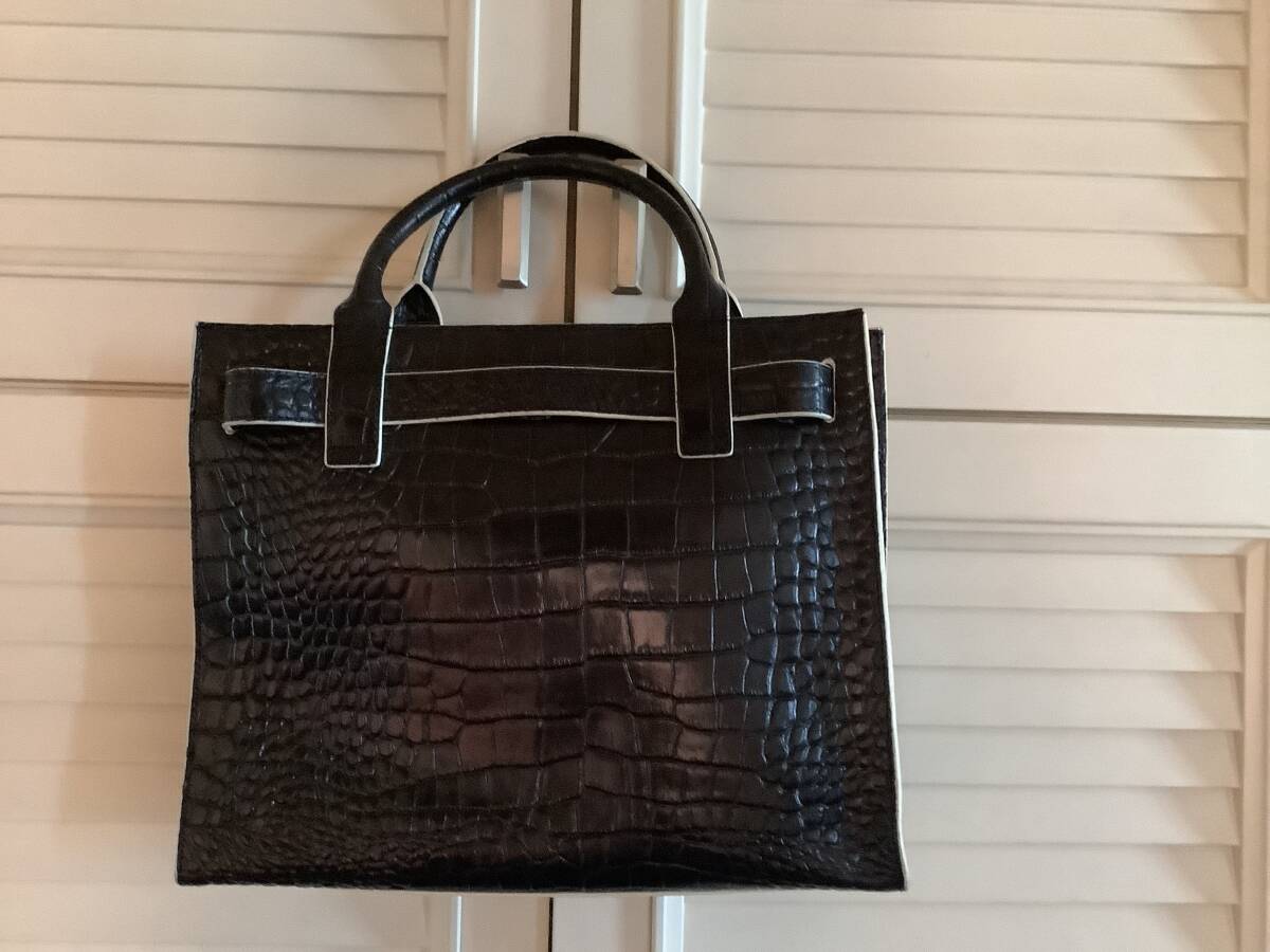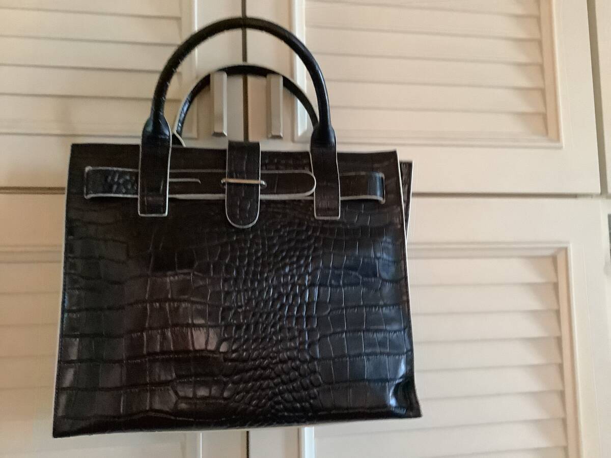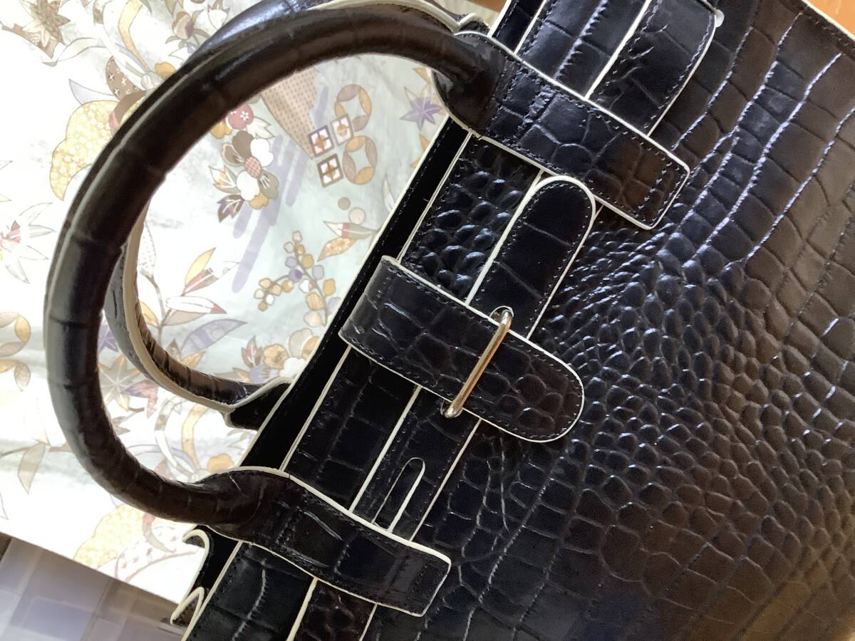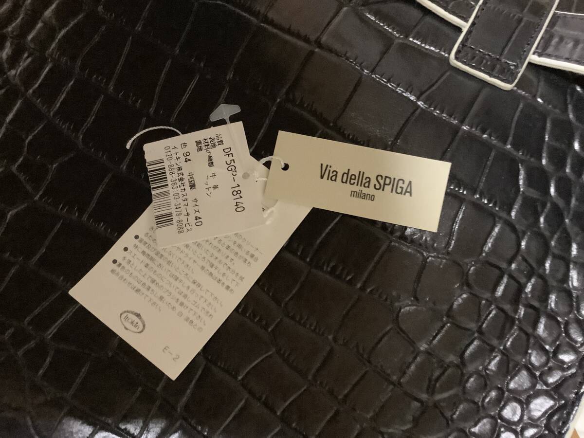 via della spigaクロコ調型押し牛革バッグ上品黒A4サイズ対応トート美品