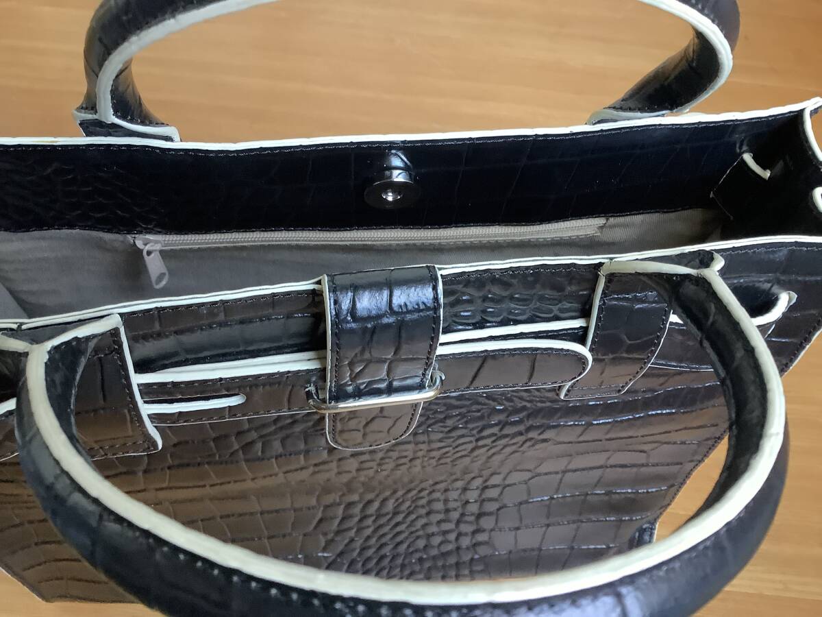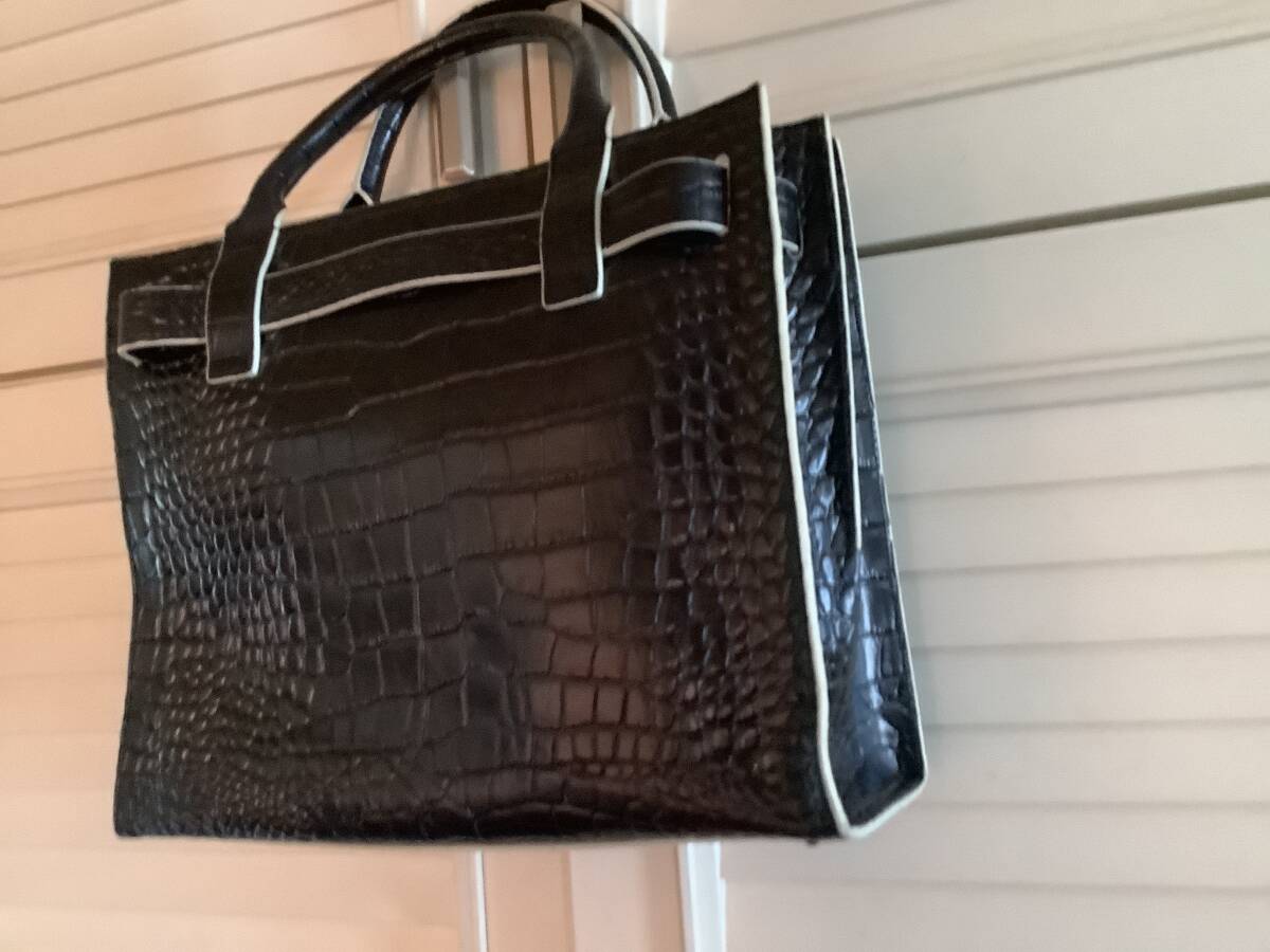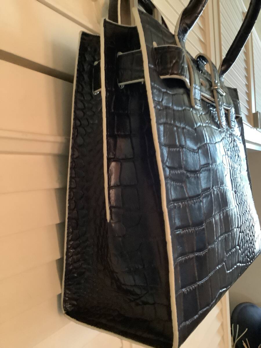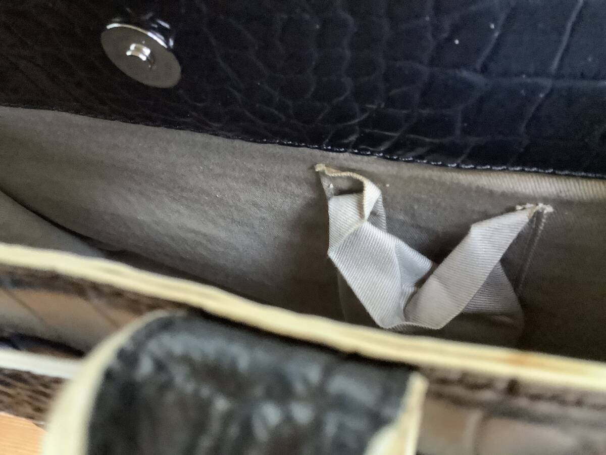via della spigaクロコ調型押し牛革バッグ上品黒A4サイズ対応トート美品