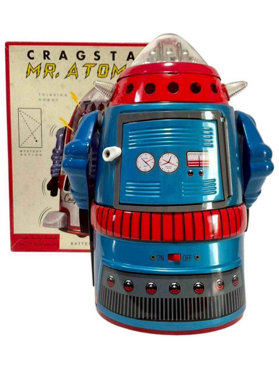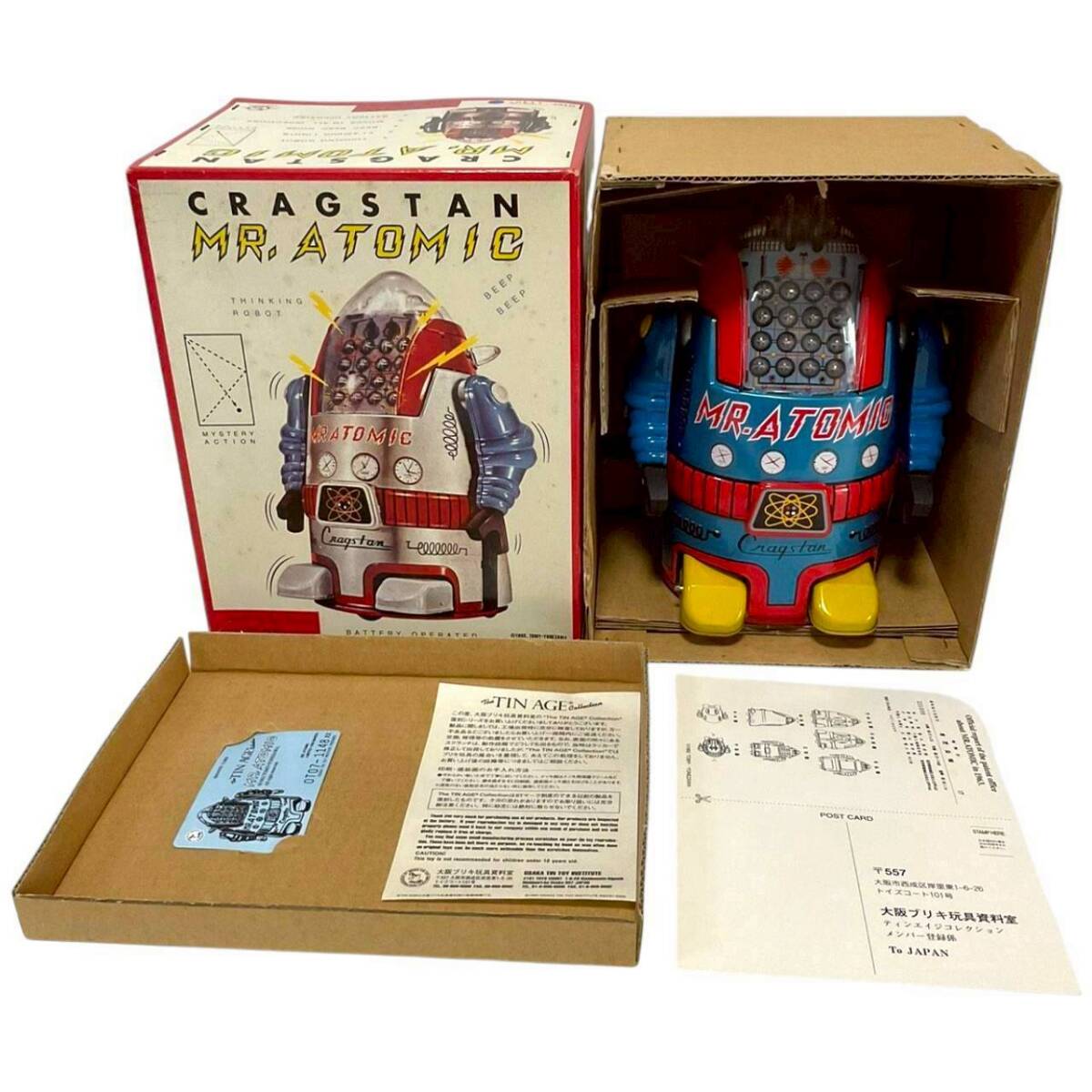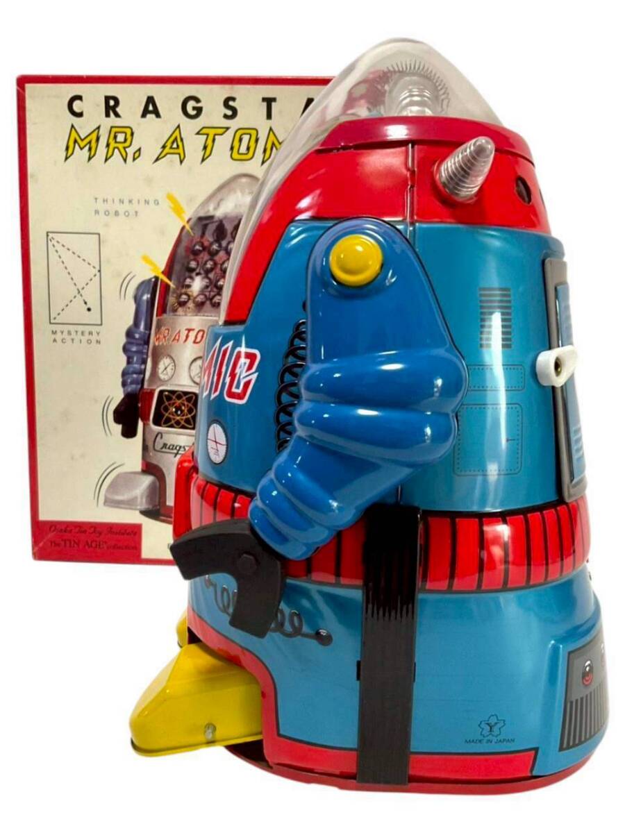 D7.【新品同様 動作良好 希少】青色 ミスターアトミック 電動ブリキ玩具 米澤製 23cm デッドストック