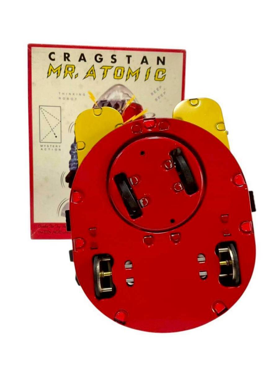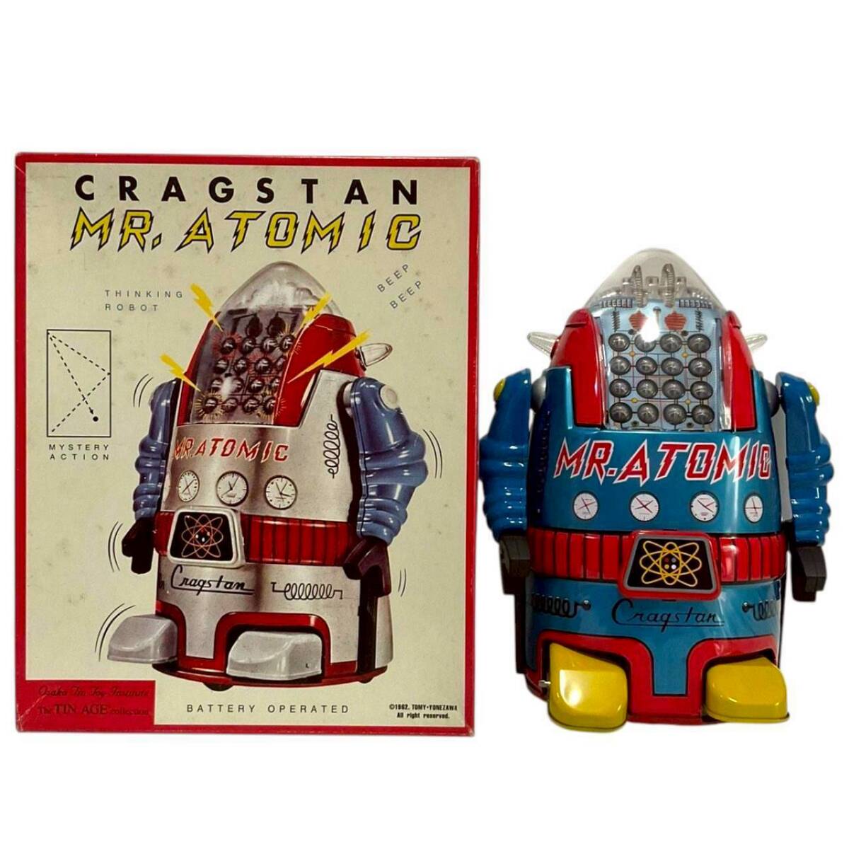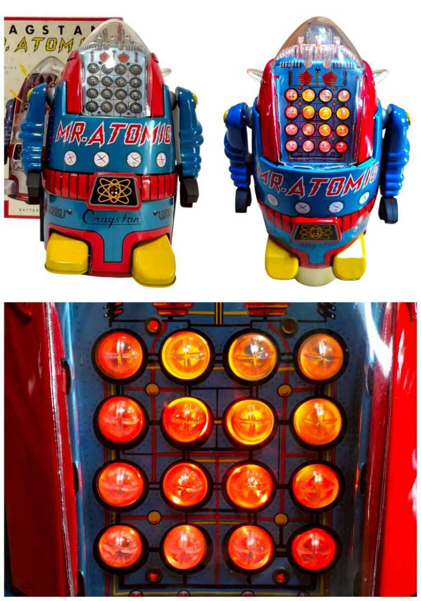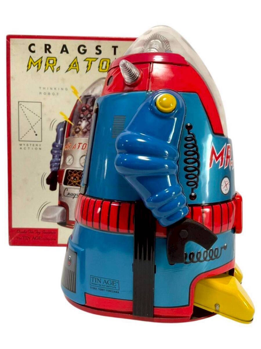 D7.【新品同様 動作良好 希少】青色 ミスターアトミック 電動ブリキ玩具 米澤製 23cm デッドストック