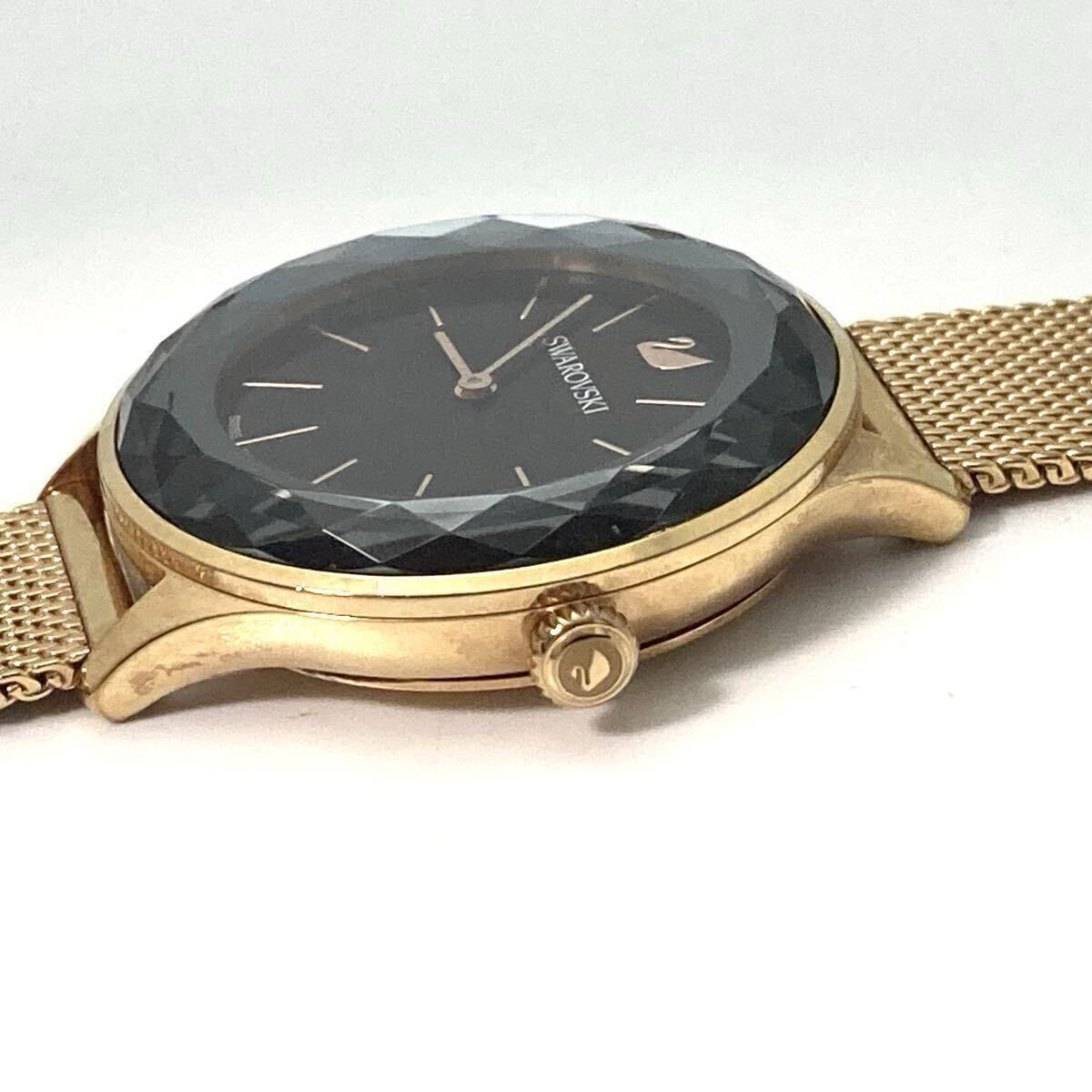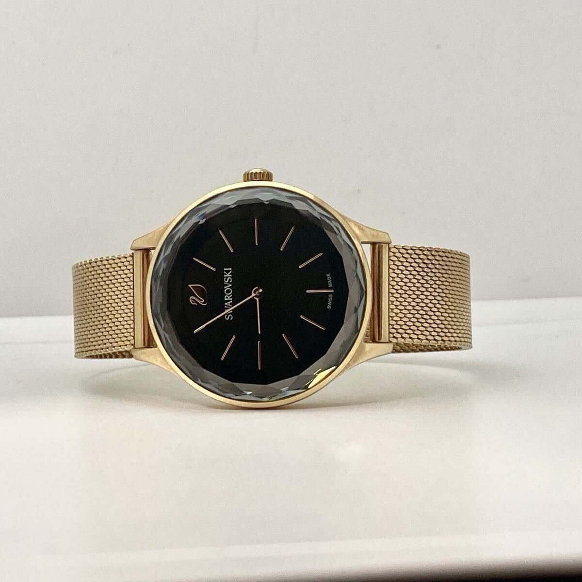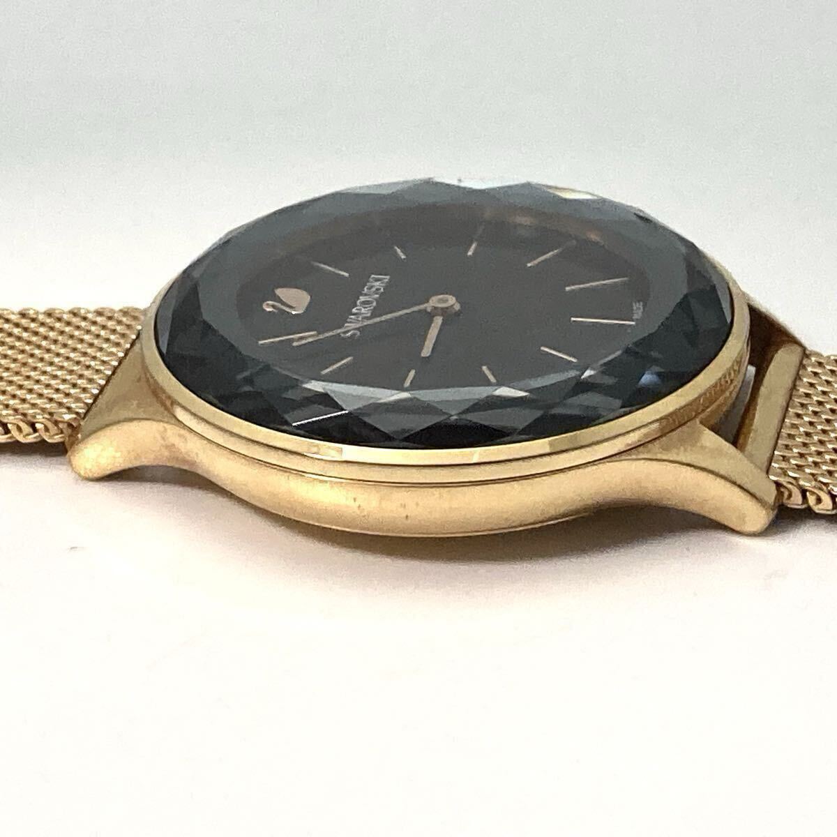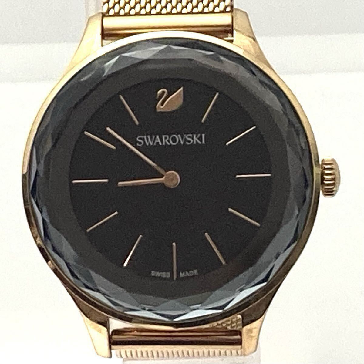 【美品・稼働品】SWAROVSKI スワロフスキー クォーツ カットガラス ブラック×ゴールド 2針 ユニセックス 時計