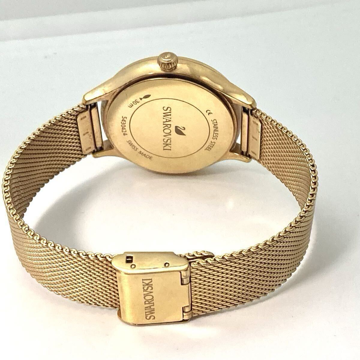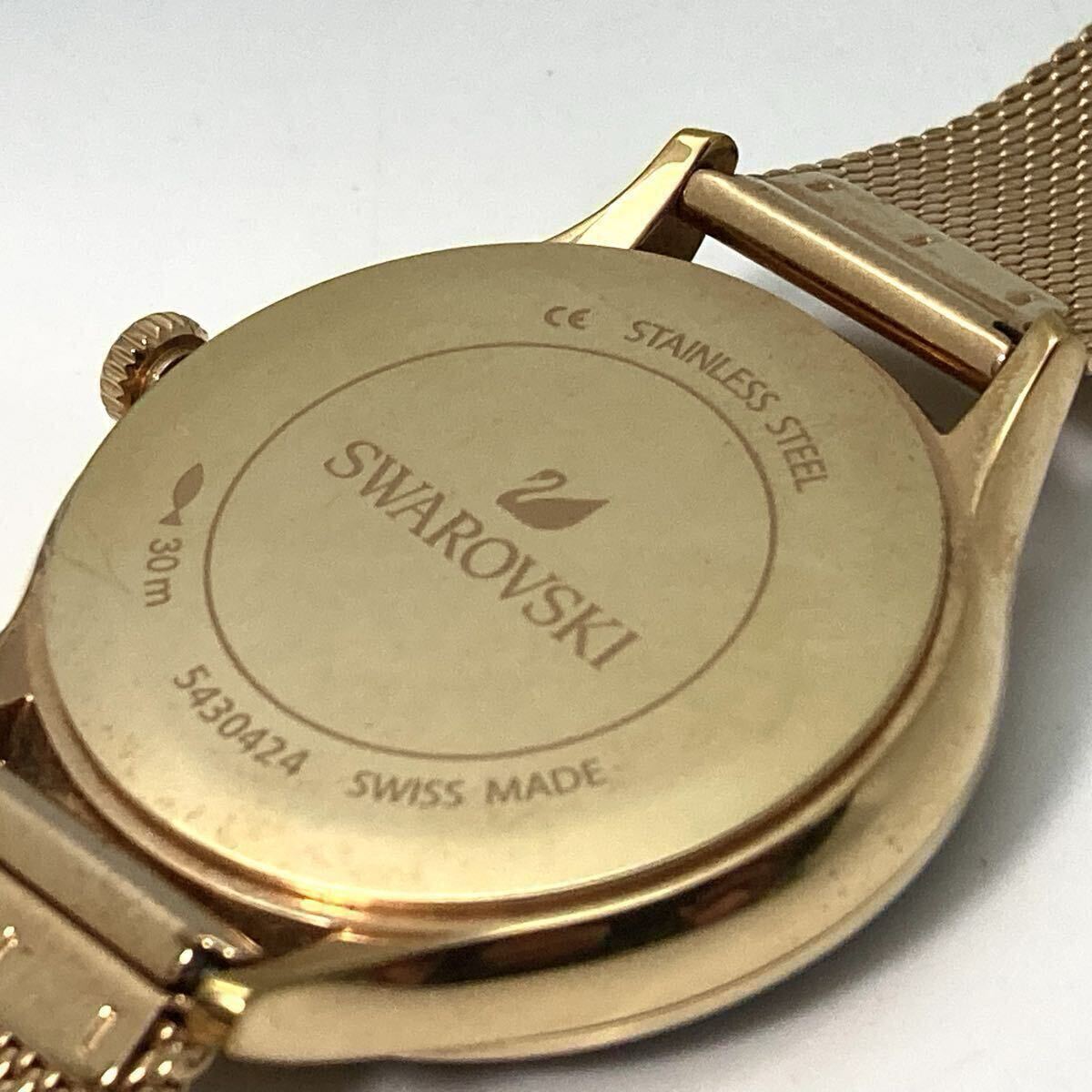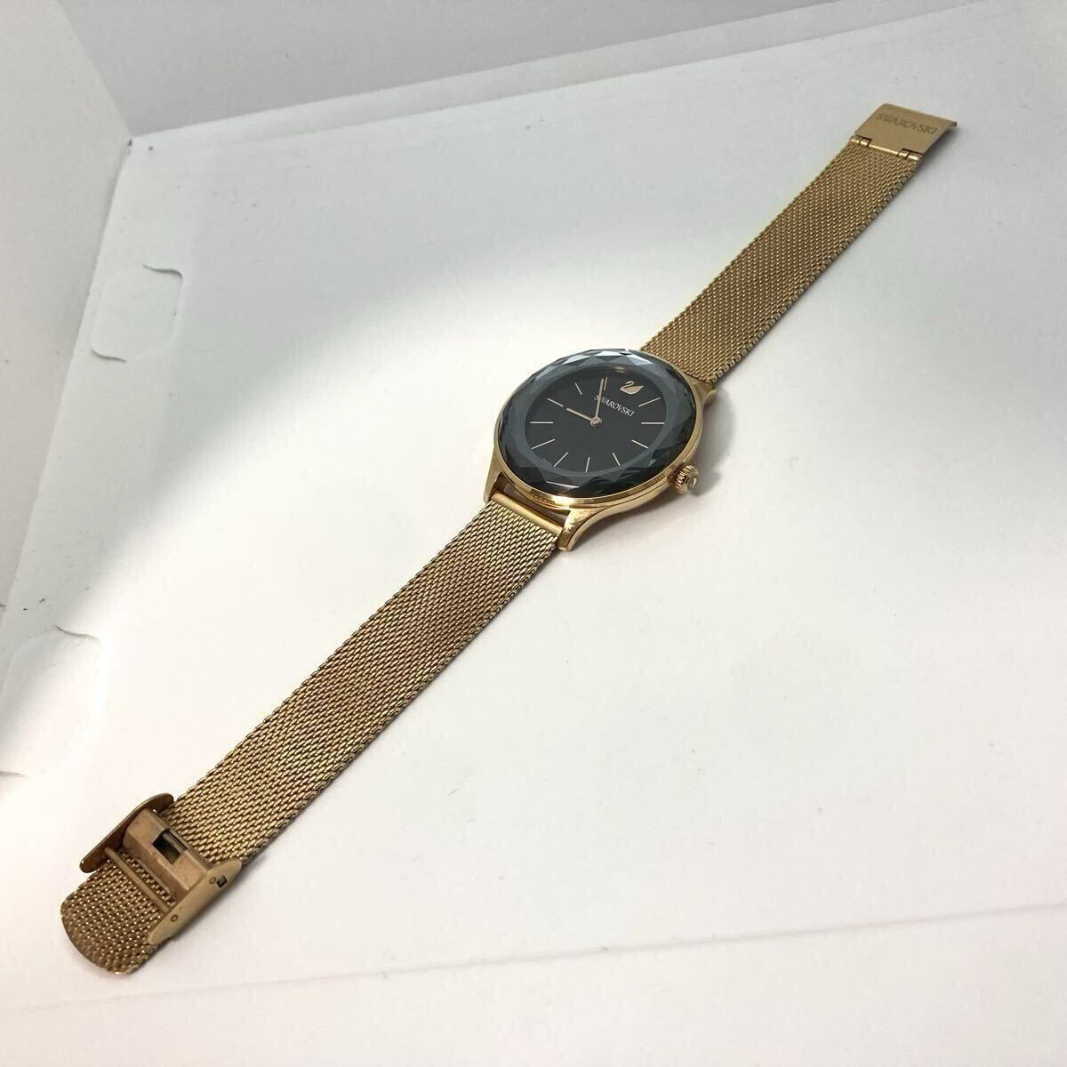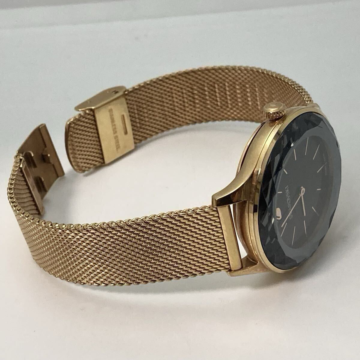 【美品・稼働品】SWAROVSKI スワロフスキー クォーツ カットガラス ブラック×ゴールド 2針 ユニセックス 時計