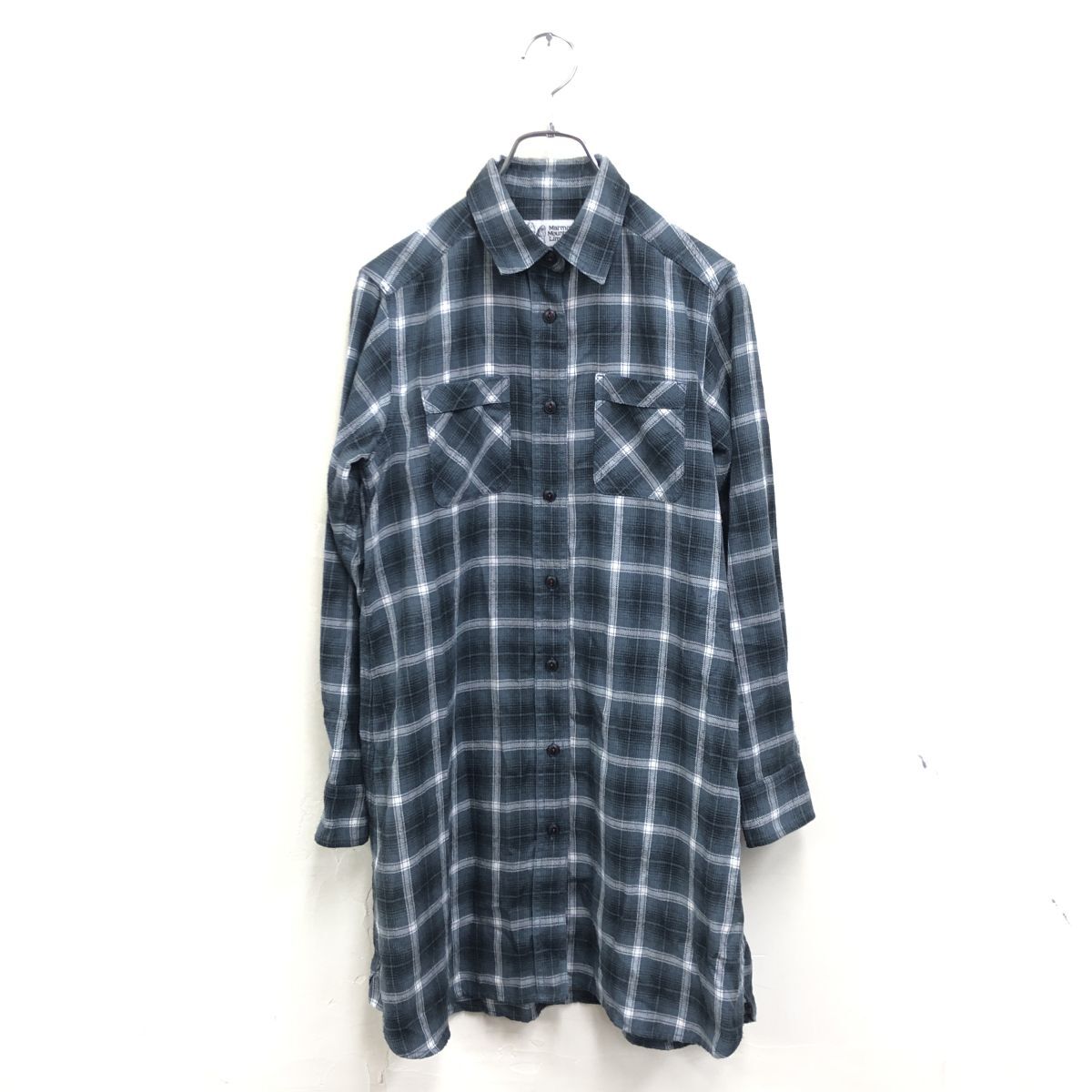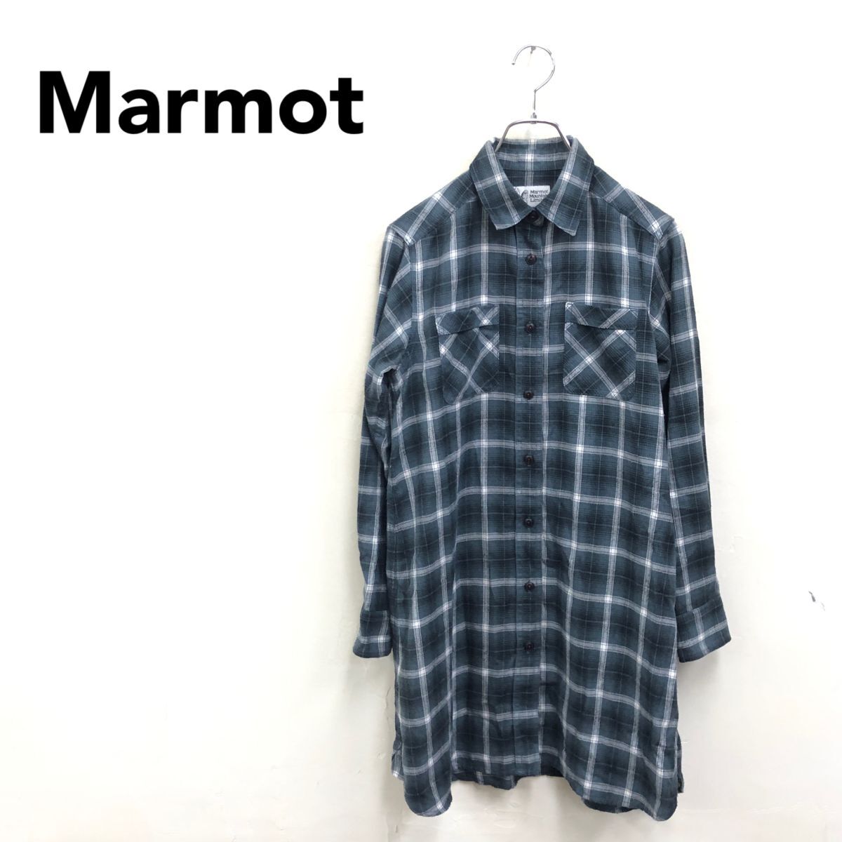 2N2171-U-N◆Marmot マーモット シャツワンピース ロングネルシャツ チェック柄 アウトドア レディースカジュアル◆sizeM 緑 グリーン