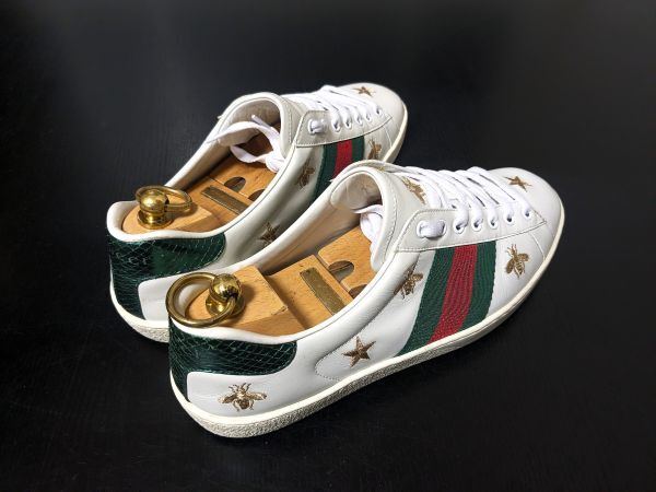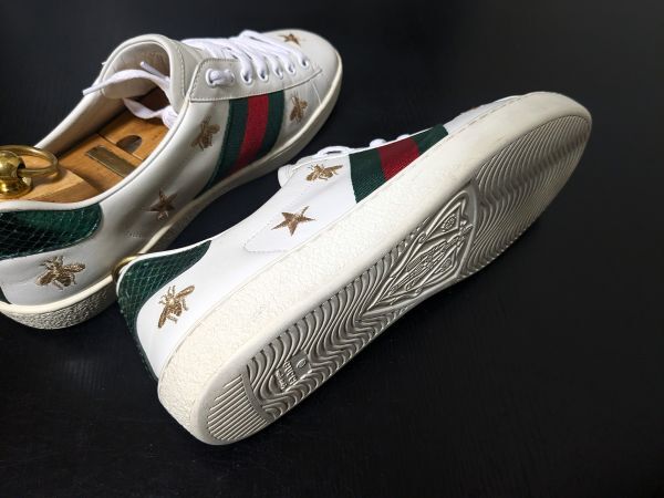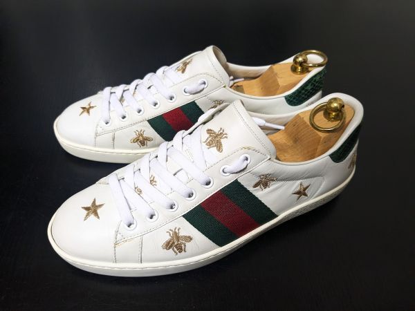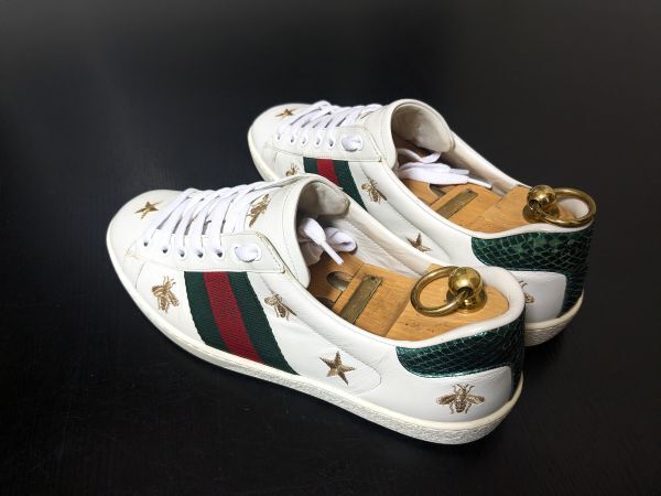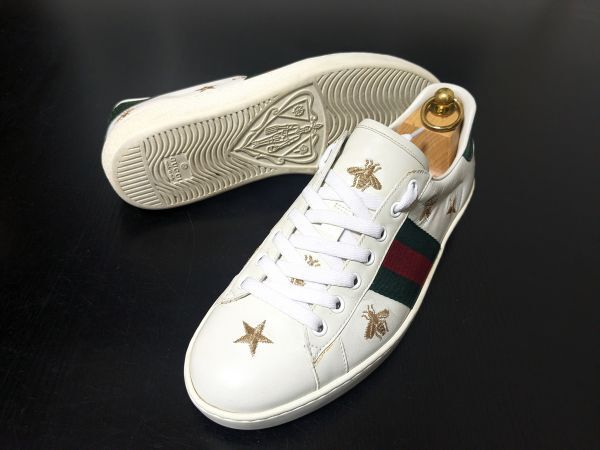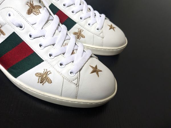 使用僅か グッチ 7.5 GUCCI オフホワイト シェリーライン 星 レザースニーカー