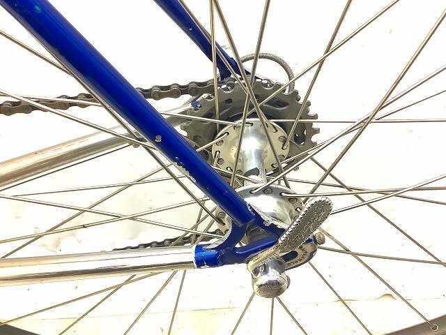 | 仕様 | フレーム材質:クロモリ フォーク材質:クロモリ ホイール:MAVIC GP4 ハブ:カンパニョーロ RECORD タイヤ:パナレーサー PRACTICE 270 シフター:カンパニョーロ Wレバー フロントディレイラー:カンパニョーロ SUPER RECORD リアディレイラー:カンパニョーロ SUPER RECORD クランク:カンパニョーロ スプロケット:レジナ EXTRA AMERICA ブレーキ:カンパニョーロ ブレーキレバー:カンパニョーロ(フードカバーはダイヤコンペ) ステム:チネリ ハンドル:日東 MOD,55 シートポスト:カンパニョーロ サドル:セライタリア |