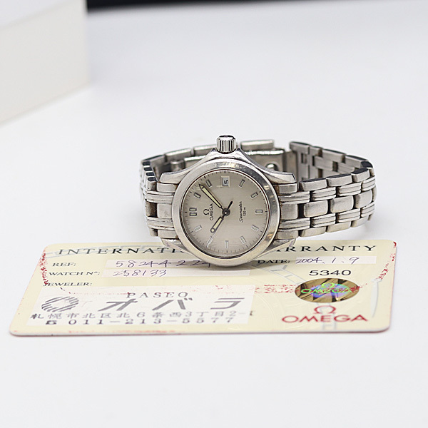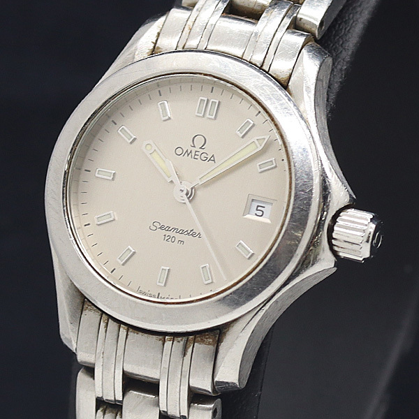 1円 保付 稼働 オメガ 2581.33 シーマスター120 58244224 QZ シルバー文字盤 レディース腕時計 3546400 11KHT KTU